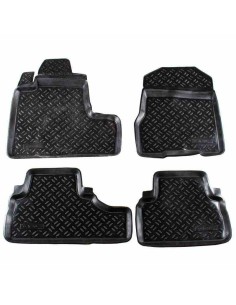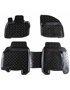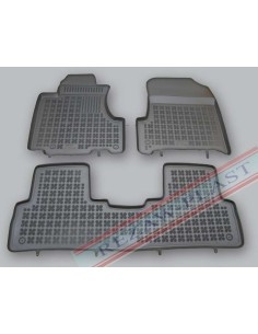 Резиновые коврики в салон производятся ведущими производителями,такими как польский"Frogum",чешским"Doma",немецким"Petex".Коврики имеют евробортик высотой в 1см.Рисунок лицевой поверхности в виде сетки,в которой задерживается вода,шипованное антискользящее покрытие с обратной стороны ковра.Главным недостатком резиновых ковриков является быстрое протирание,особенно водительского ковра в районе газовой педали.Хорошее решение этой проблемы показала фирма "Aileron"(Россия),сделав усиленный ворсовый подпятник в районе педального узла.Это значительно увеличило срок службы изделия.