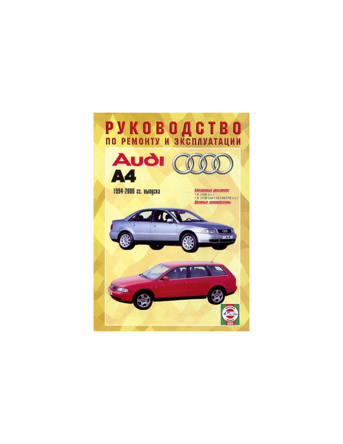 Устройство автомобиля,возможные неисправности и методы их устранения, сопрягаемые размеры основных деталей и пределы их допустимого износа,рекомендуемое смазочные материалы,рабочие жидкости и т.п-все это можно найти на страницах издания "Гуси-лебеди" Книга автомобильная на Audi A4, Бензин с 1994 по 2000 г.