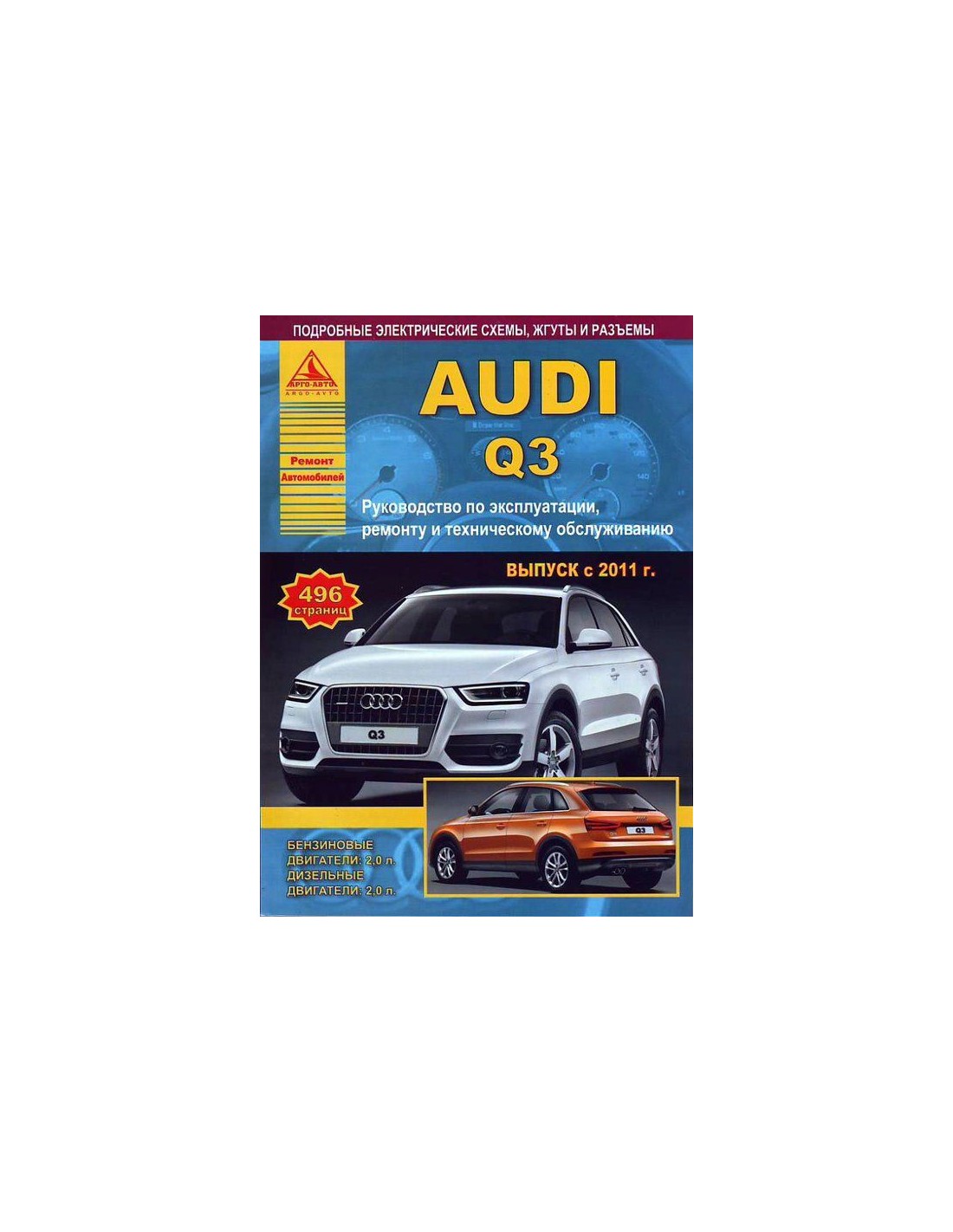 Книга по ремонту Audi Q3 c 2011 г.,содержит руководство по эксплуатации,подробные сведения по техническому обслуживанию автомобиля,систему смазки и охлаждения,запуска и зарядки,элементов механических и автоматических коробок передач,тормозной системы,включая антиблокировочную систему тормозов,рулевого управления,подвески,кузовных элементов, систем кондиционирования и вентиляции.