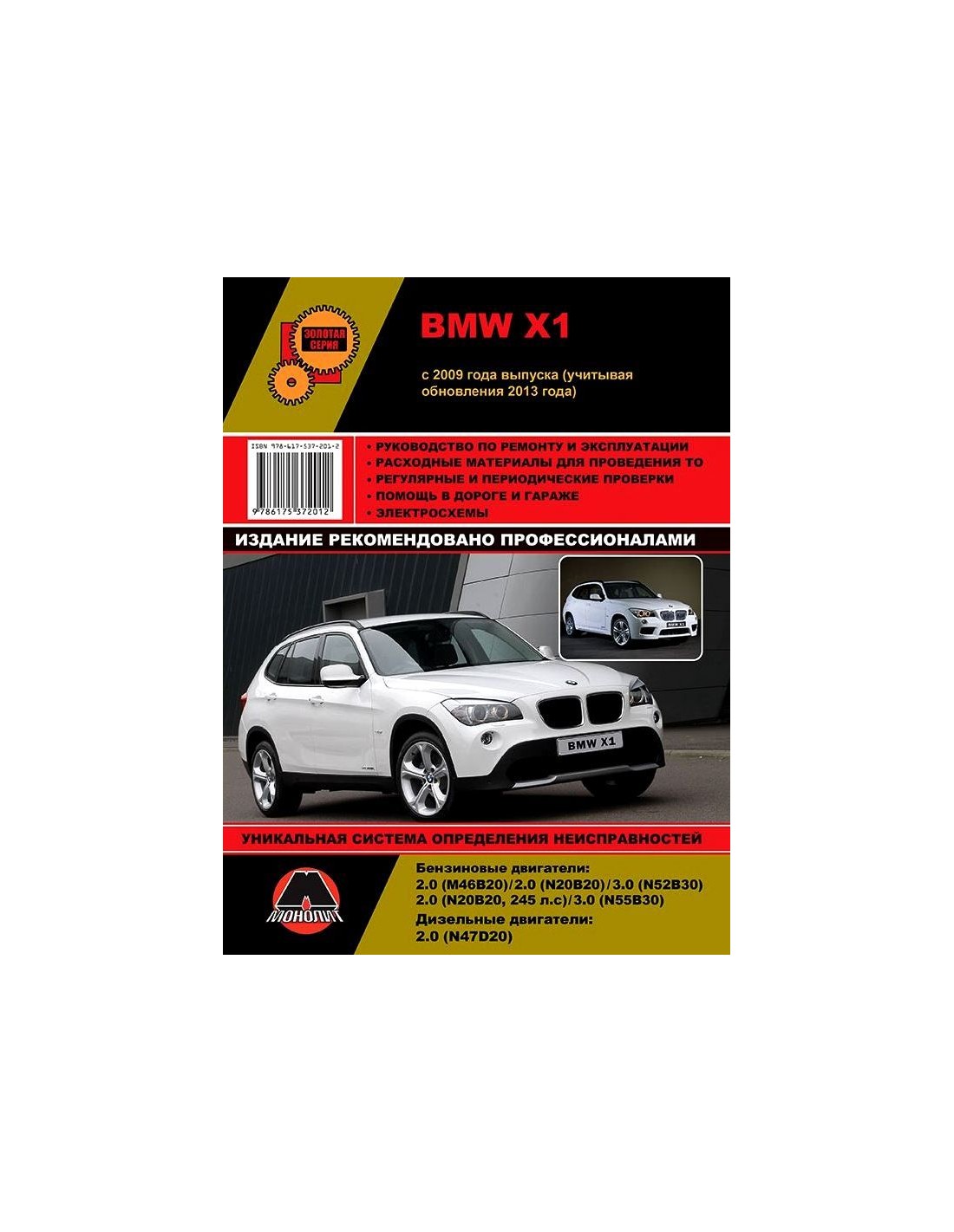 Книга по ремонту BMW X1 с 2009 (+обновление 2012) ,содержит руководство по эксплуатации,подробные сведения по техническому обслуживанию автомобиля,диагностике ремонту и регулировке элементов систем двигателя,в том числе электронного управления двигателем,систему смазки и охлаждения,запуска и зарядки,элементов механических и автоматических коробок передач,раздаточной коробки,тормозной системы,включая антиблокировочную систему тормозов,рулевого управления,подвески,кузовных элементов, систем кондиционирования и вентиляции.