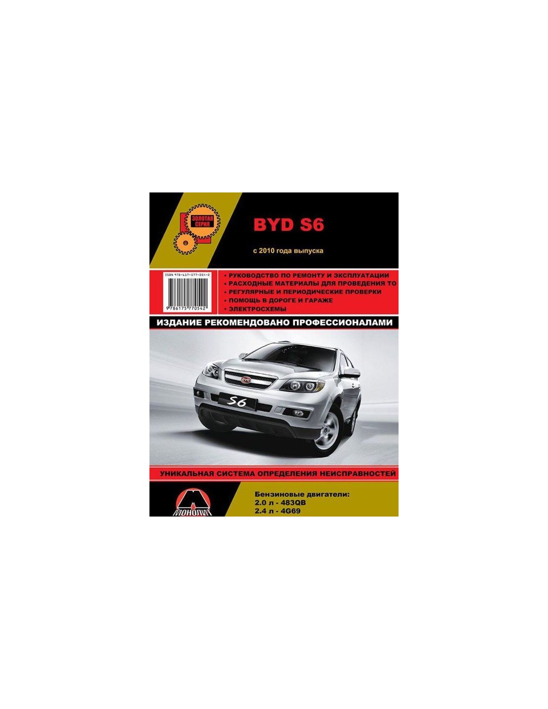 Книга по ремонту BYD S6 рем с 2010г ,содержит руководство по эксплуатации,подробные сведения по техническому обслуживанию автомобиля,диагностике ремонту и регулировке элементов систем двигателя,в том числе электронного управления двигателем,систему смазки и охлаждения,запуска и зарядки,элементов механических и автоматических коробок передач,раздаточной коробки,тормозной системы,включая антиблокировочную систему тормозов,рулевого управления,подвески,кузовных элементов, систем кондиционирования и вентиляции.
