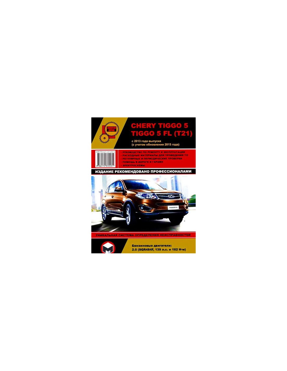 Книга по ремонту Chery Tiggo 5 / Tiggo 5 FL (T21) c 2013г ,содержит руководство по эксплуатации,подробные сведения по техническому обслуживанию автомобиля,диагностике ремонту и регулировке элементов систем двигателя,в том числе электронного управления двигателем,систему смазки и охлаждения,запуска и зарядки,элементов механических и автоматических коробок передач,раздаточной коробки,тормозной системы,включая антиблокировочную систему тормозов,рулевого управления,подвески,кузовных элементов, систем кондиционирования и вентиляции.