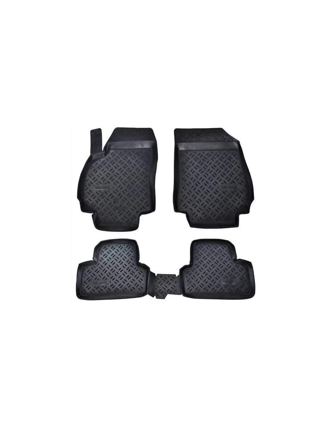 Российские коврики "Элерон" сделаны под модель Chevrolet Orlando (2010-)(2 ряда) и не подходят на другой автомобиль.Резиновые коврики на Chevrolet Orlando (2010-)(2 ряда) имеют перемычку на тоннель,совмещенную с одним из задних ковриков;места для штатных креплений;высокий борт около 3см.