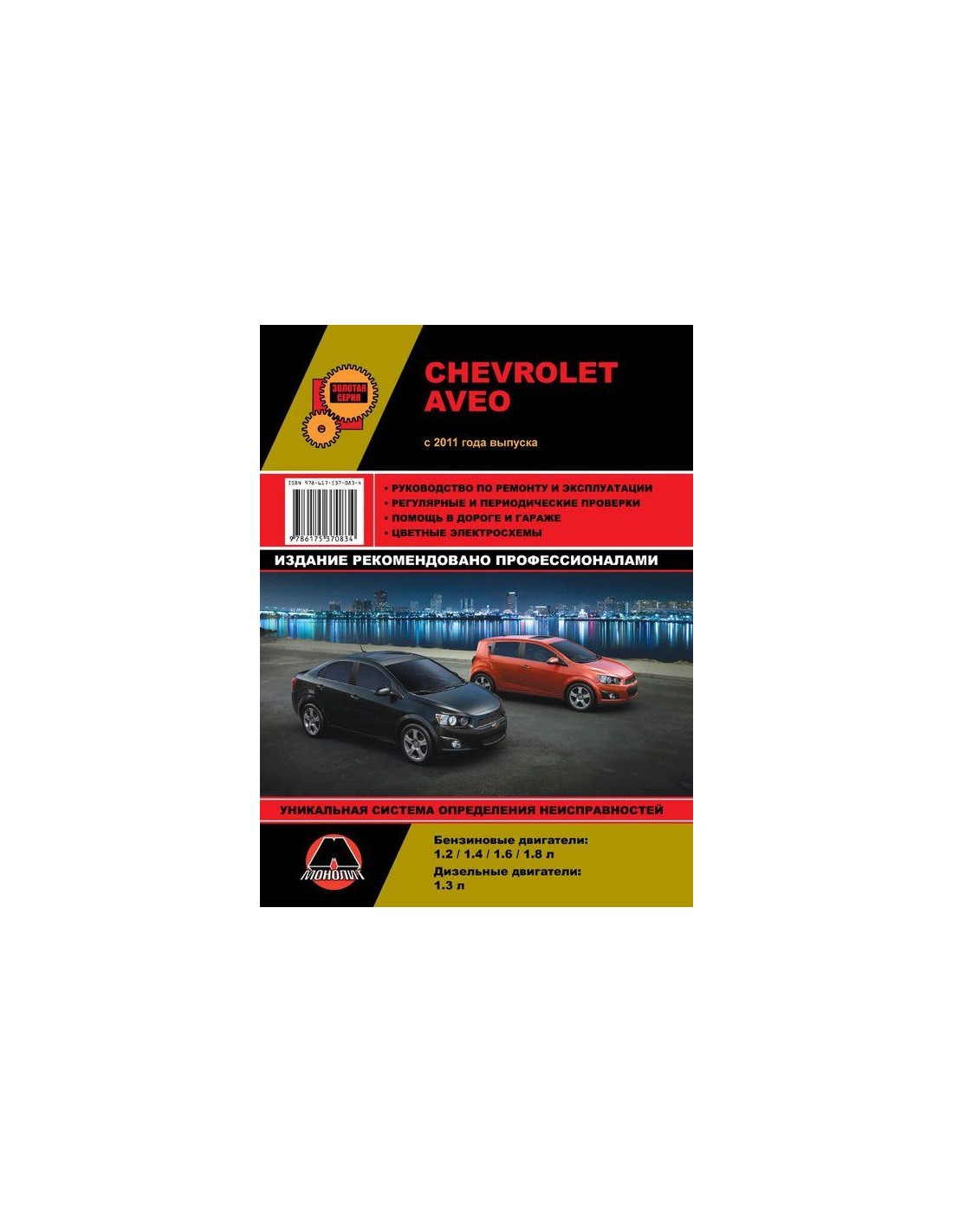 Книга по ремонту Chevrolet Aveo (с 2011) ,содержит руководство по эксплуатации,подробные сведения по техническому обслуживанию автомобиля,диагностике ремонту и регулировке элементов систем двигателя,в том числе электронного управления двигателем,систему смазки и охлаждения,запуска и зарядки,элементов механических и автоматических коробок передач,раздаточной коробки,тормозной системы,включая антиблокировочную систему тормозов,рулевого управления,подвески,кузовных элементов, систем кондиционирования и вентиляции.