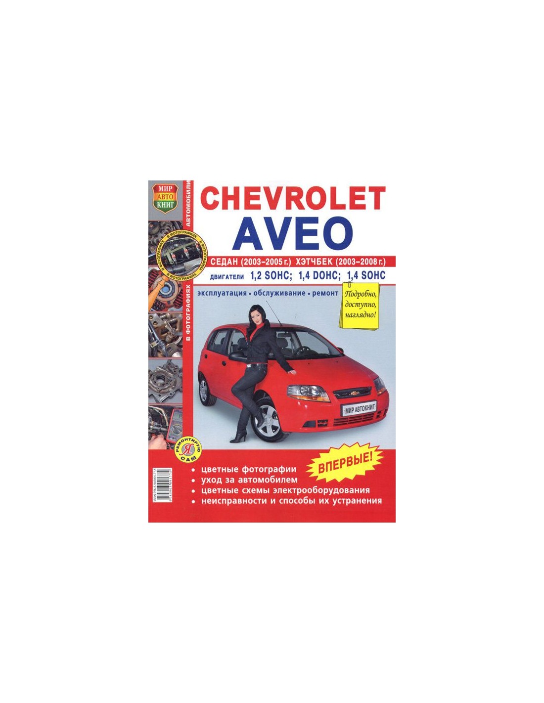 Книга по ремонту Chevrolet Aveo. Седан (2003-06г.).. Хэтчбек (2003-08). ,содержит руководство по эксплуатации,общие сведения об устройстве автомобиля,рекомендации по техническому обслуживанию автомобиля,диагностике ремонту и регулировке элементов систем двигателя,систему смазки и охлаждения,запуска и зарядки,элементов механических и автоматических коробок передач,тормозной системы,включая антиблокировочную систему тормозов,рулевого управления,подвески,кузовных элементов, систем кондиционирования и вентиляции.