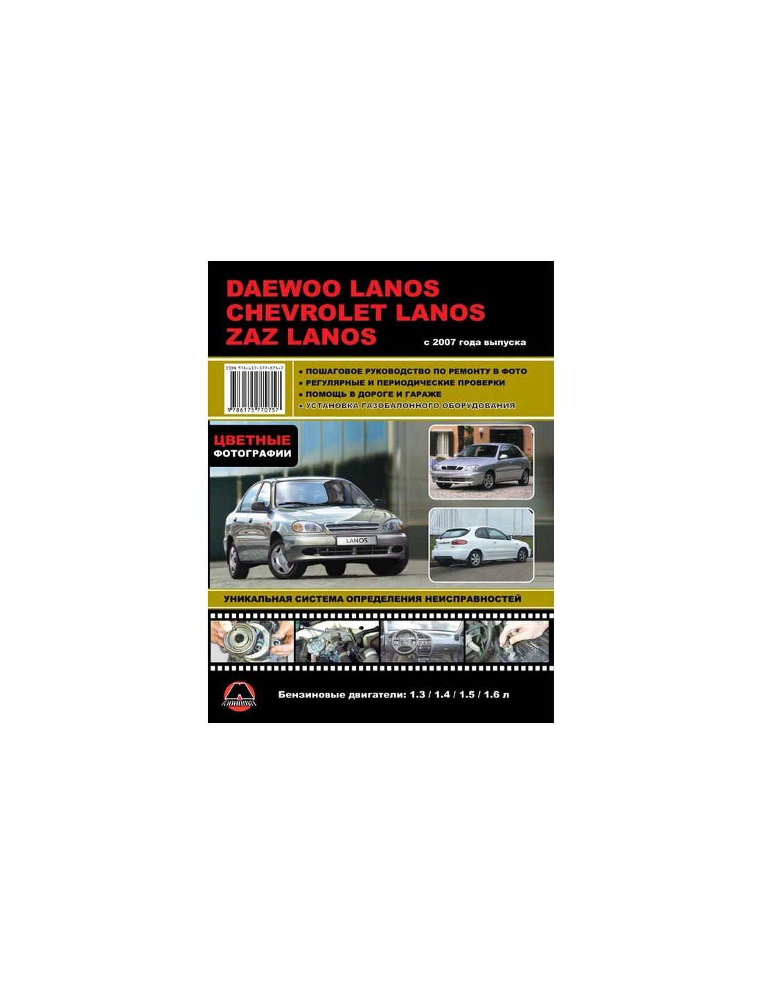 Книга по ремонту Daewoo Lanos, Chevrolet Lanos, Zaz Lanos с 2007г ,содержит руководство по эксплуатации,подробные сведения по техническому обслуживанию автомобиля,диагностике ремонту и регулировке элементов систем двигателя,в том числе электронного управления двигателем,систему смазки и охлаждения,запуска и зарядки,элементов механических и автоматических коробок передач,раздаточной коробки,тормозной системы,включая антиблокировочную систему тормозов,рулевого управления,подвески,кузовных элементов, систем кондиционирования и вентиляции.