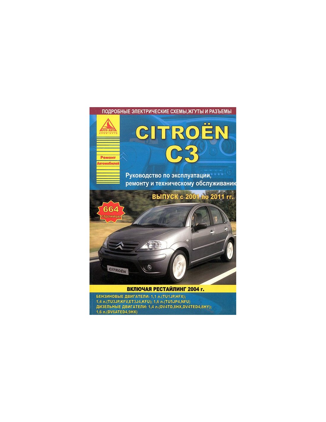 Книга по ремонту Citroen C3 2001-11, рестайл. 2004 г.,содержит руководство по эксплуатации,подробные сведения по техническому обслуживанию автомобиля,систему смазки и охлаждения,запуска и зарядки,элементов механических и автоматических коробок передач,тормозной системы,включая антиблокировочную систему тормозов,рулевого управления,подвески,кузовных элементов, систем кондиционирования и вентиляции.