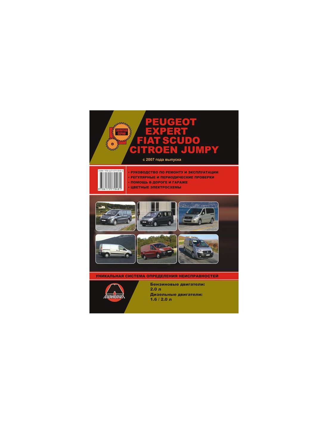 Книга по ремонту Peugeot Expert / FIAT Scudo / Citroen Jumpy (с 2007) ,содержит руководство по эксплуатации,подробные сведения по техническому обслуживанию автомобиля,диагностике ремонту и регулировке элементов систем двигателя,в том числе электронного управления двигателем,систему смазки и охлаждения,запуска и зарядки,элементов механических и автоматических коробок передач,раздаточной коробки,тормозной системы,включая антиблокировочную систему тормозов,рулевого управления,подвески,кузовных элементов, систем кондиционирования и вентиляции.