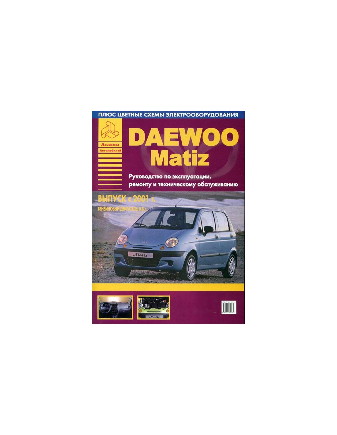 Устройство автомобиля,возможные неисправности и методы их устранения, сопрягаемые размеры основных деталей и пределы их допустимого износа,рекомендуемое смазочные материалы,рабочие жидкости и т.п-все это можно найти на страницах издания "Атласы-автомобильные" Книга автомобильная на Daewoo Matiz с 2001 г.