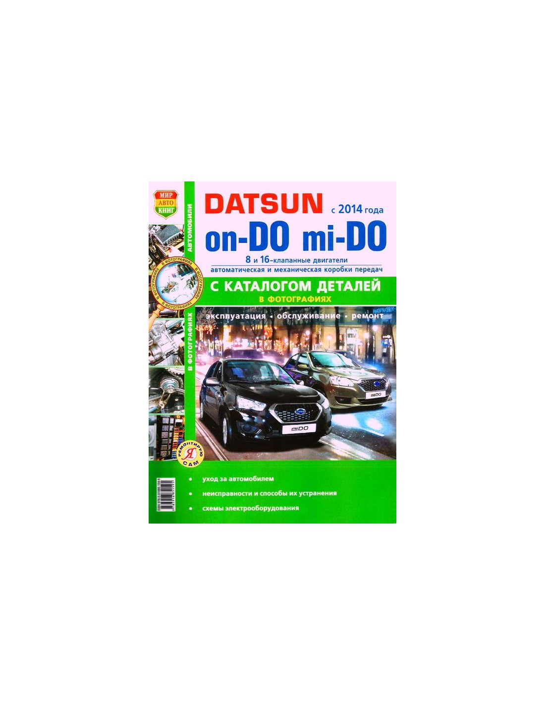 Книга по ремонту Datsun on-DO, mi-DO c 2014 г. (ч/б +Каталог деталей). ,содержит руководство по эксплуатации,общие сведения об устройстве автомобиля,рекомендации по техническому обслуживанию автомобиля,диагностике ремонту и регулировке элементов систем двигателя,систему смазки и охлаждения,запуска и зарядки,элементов механических и автоматических коробок передач,тормозной системы,включая антиблокировочную систему тормозов,рулевого управления,подвески,кузовных элементов, систем кондиционирования и вентиляции.