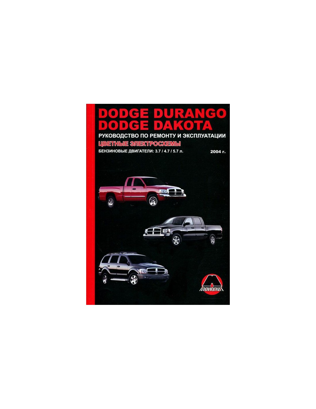 Книга по ремонту Dodge Durango / Dakota (с 2004) ,содержит руководство по эксплуатации,подробные сведения по техническому обслуживанию автомобиля,диагностике ремонту и регулировке элементов систем двигателя,в том числе электронного управления двигателем,систему смазки и охлаждения,запуска и зарядки,элементов механических и автоматических коробок передач,раздаточной коробки,тормозной системы,включая антиблокировочную систему тормозов,рулевого управления,подвески,кузовных элементов, систем кондиционирования и вентиляции.
