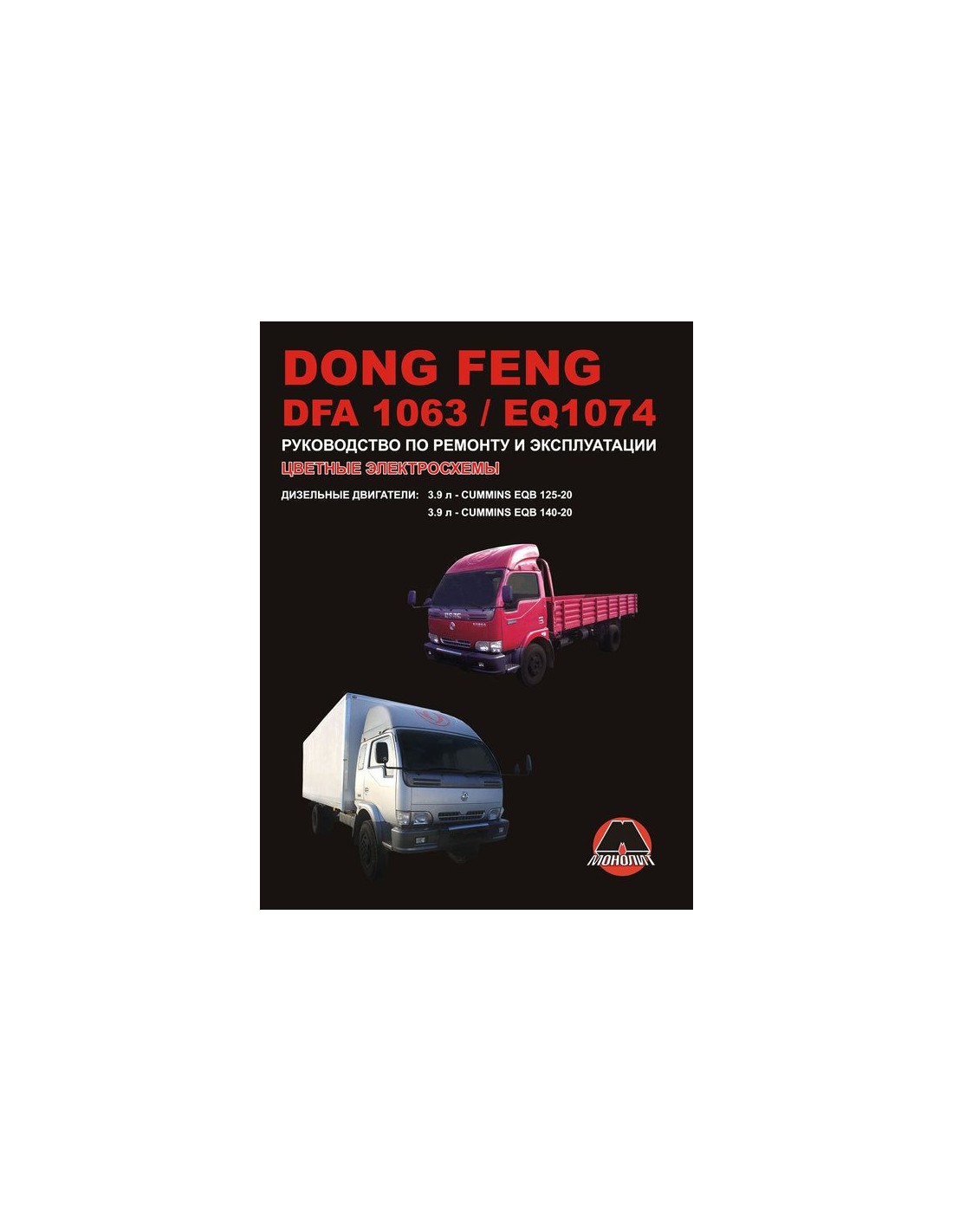 Книга по ремонту Dong Feng DFA 1063 / EQ 1074 ,содержит руководство по эксплуатации,подробные сведения по техническому обслуживанию автомобиля,диагностике ремонту и регулировке элементов систем двигателя,в том числе электронного управления двигателем,систему смазки и охлаждения,запуска и зарядки,элементов механических и автоматических коробок передач,раздаточной коробки,тормозной системы,включая антиблокировочную систему тормозов,рулевого управления,подвески,кузовных элементов, систем кондиционирования и вентиляции.