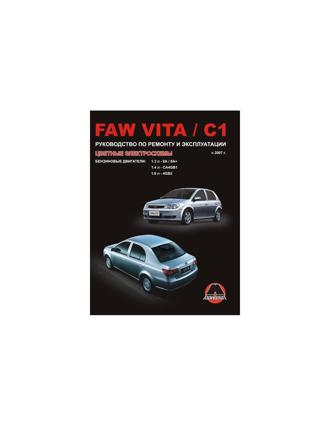 Книга по ремонту FAW Vita / С1(с 2007) ,содержит руководство по эксплуатации,подробные сведения по техническому обслуживанию автомобиля,диагностике ремонту и регулировке элементов систем двигателя,в том числе электронного управления двигателем,систему смазки и охлаждения,запуска и зарядки,элементов механических и автоматических коробок передач,раздаточной коробки,тормозной системы,включая антиблокировочную систему тормозов,рулевого управления,подвески,кузовных элементов, систем кондиционирования и вентиляции.