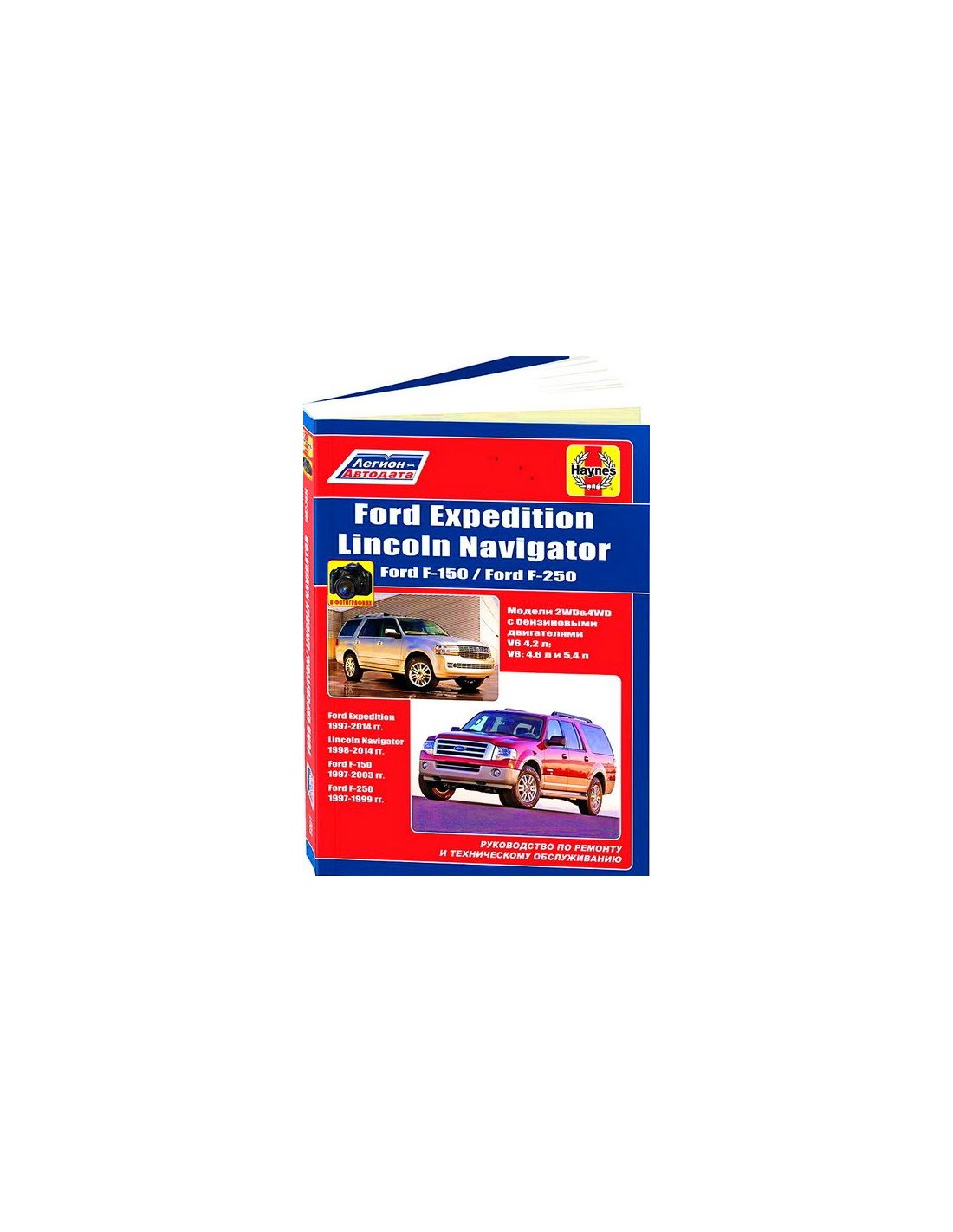 Книга по ремонту FORD Expedition 1997-14 г.,содержит руководство по эксплуатации,подробные сведения по техническому обслуживанию автомобиля,диагностике ремонту и регулировке элементов систем двигателя,в том числе электронного управления двигателем,систему смазки и охлаждения,запуска и зарядки,элементов механических и автоматических коробок передач,раздаточной коробки,тормозной системы,включая антиблокировочную систему тормозов,рулевого управления,подвески,кузовных элементов, систем кондиционирования и вентиляции.