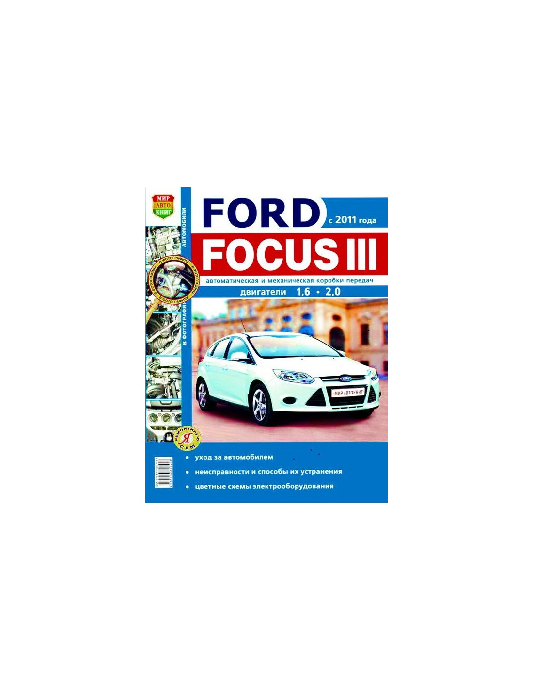 Книга по ремонту Ford Focus III с 2011 г. ,содержит руководство по эксплуатации,общие сведения об устройстве автомобиля,рекомендации по техническому обслуживанию автомобиля,диагностике ремонту и регулировке элементов систем двигателя,систему смазки и охлаждения,запуска и зарядки,элементов механических и автоматических коробок передач,тормозной системы,включая антиблокировочную систему тормозов,рулевого управления,подвески,кузовных элементов, систем кондиционирования и вентиляции.