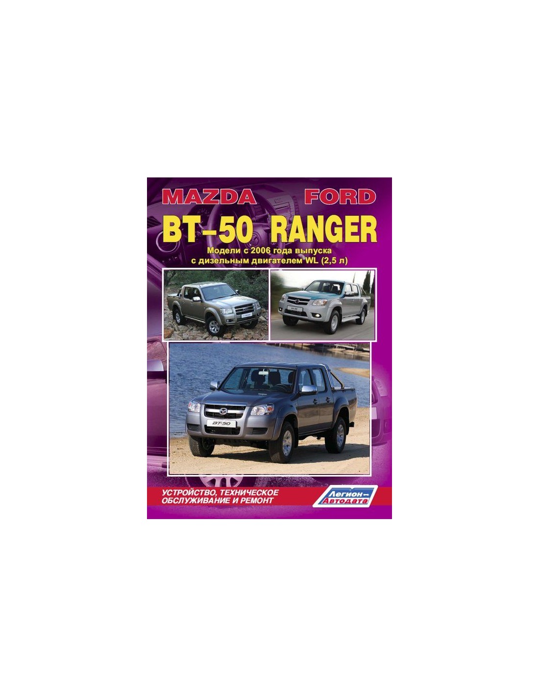 Книга по ремонту Mazda BT-50 & Ford Ranger c 2006 г.,содержит руководство по эксплуатации,подробные сведения по техническому обслуживанию автомобиля,диагностике ремонту и регулировке элементов систем двигателя,в том числе электронного управления двигателем,систему смазки и охлаждения,запуска и зарядки,элементов механических и автоматических коробок передач,раздаточной коробки,тормозной системы,включая антиблокировочную систему тормозов,рулевого управления,подвески,кузовных элементов, систем кондиционирования и вентиляции.