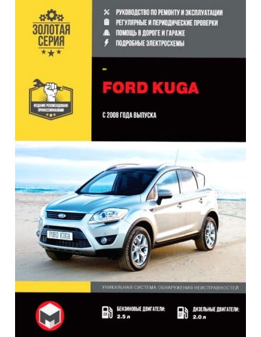 Книга по ремонту Ford Kuga 2008-13 ,содержит руководство по эксплуатации,подробные сведения по техническому обслуживанию автомобиля,диагностике ремонту и регулировке элементов систем двигателя,в том числе электронного управления двигателем,систему смазки и охлаждения,запуска и зарядки,элементов механических и автоматических коробок передач,раздаточной коробки,тормозной системы,включая антиблокировочную систему тормозов,рулевого управления,подвески,кузовных элементов, систем кондиционирования и вентиляции.