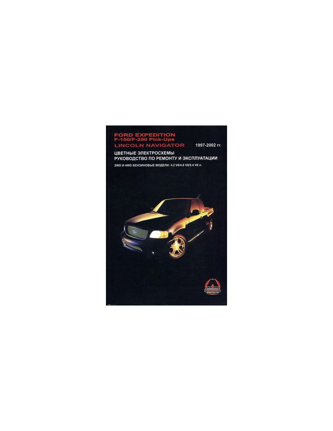 Книга по ремонту Ford Expedition F-150/F-250 Pick-Ups /Lincoln Navigator 1997-2002г ,содержит руководство по эксплуатации,подробные сведения по техническому обслуживанию автомобиля,диагностике ремонту и регулировке элементов систем двигателя,в том числе электронного управления двигателем,систему смазки и охлаждения,запуска и зарядки,элементов механических и автоматических коробок передач,раздаточной коробки,тормозной системы,включая антиблокировочную систему тормозов,рулевого управления,подвески,кузовных элементов, систем кондиционирования и вентиляции.