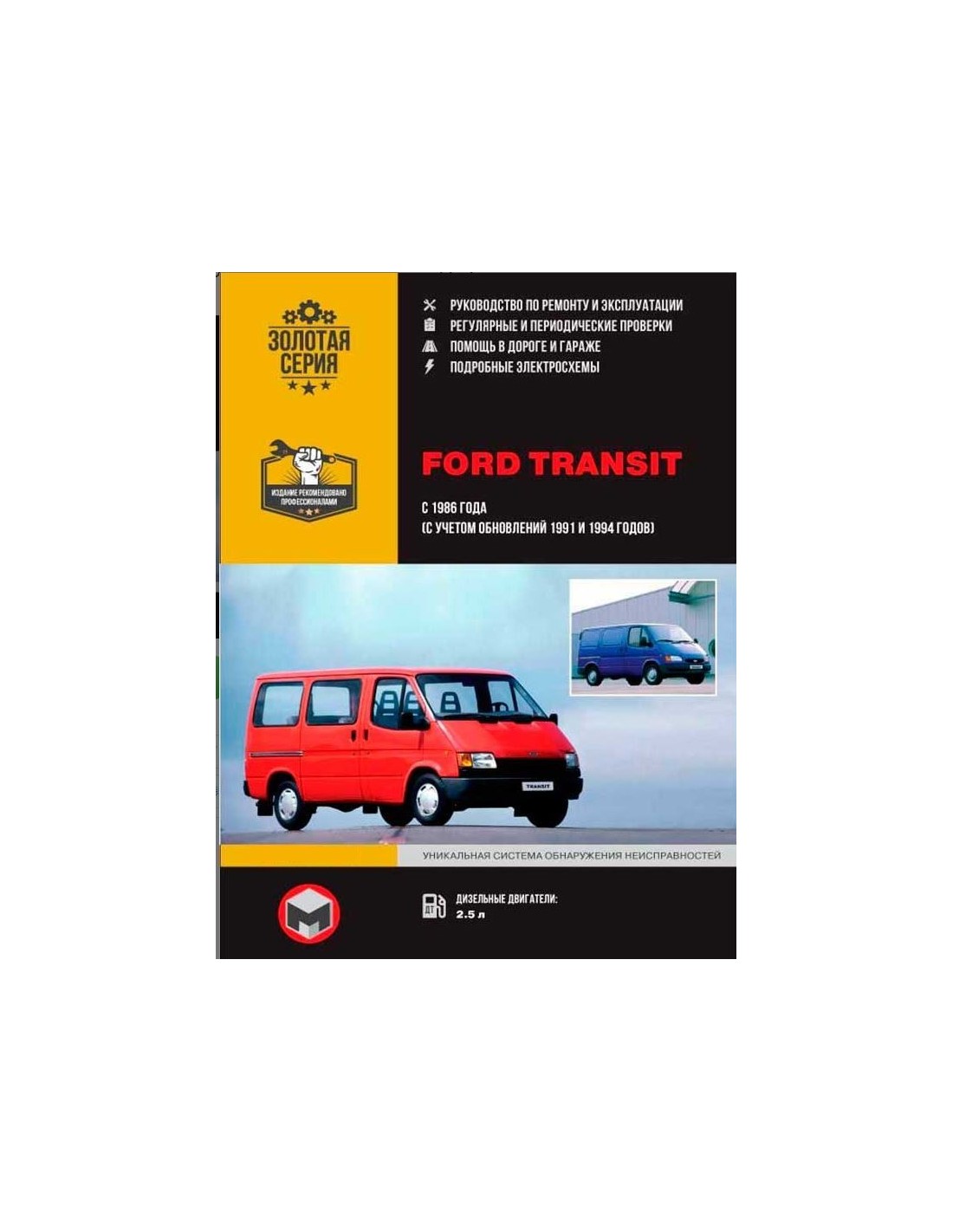 Книга по ремонту Ford Transit (диз) c 1986 г (с учётом обновлений 1991 и 1994 г ) ,содержит руководство по эксплуатации,подробные сведения по техническому обслуживанию автомобиля,диагностике ремонту и регулировке элементов систем двигателя,в том числе электронного управления двигателем,систему смазки и охлаждения,запуска и зарядки,элементов механических и автоматических коробок передач,раздаточной коробки,тормозной системы,включая антиблокировочную систему тормозов,рулевого управления,подвески,кузовных элементов, систем кондиционирования и вентиляции.