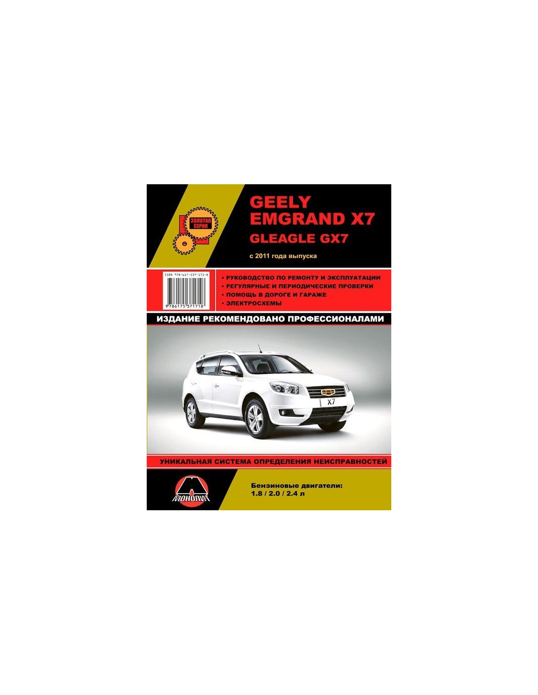 Устройство автомобиля,возможные неисправности и методы их устранения, сопрягаемые размеры основных деталей и пределы их допустимого износа,рекомендуемое смазочные материалы,рабочие жидкости и каталожные номера расходных запчастей,необходимых для технического обслуживания,размеры рекомендуемых и допускаемых шин и дисков-все это можно найти на страницах издания "Монолит" Книга автомобильная на Geely Emgrand X7 (с 2011)