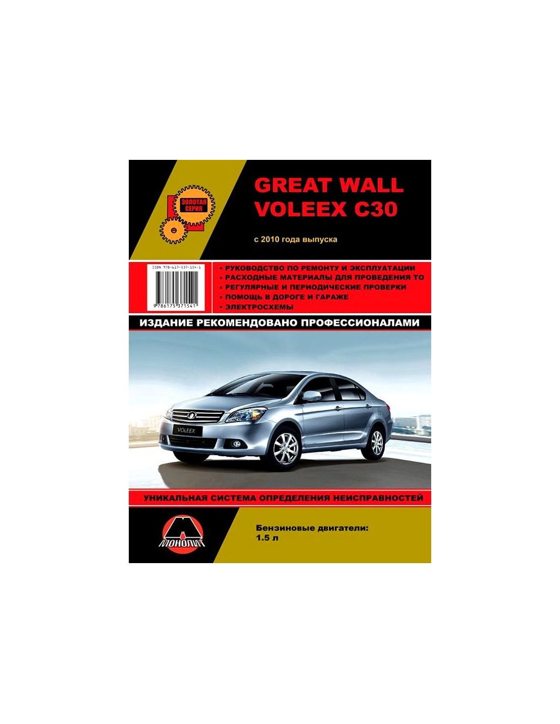 Устройство автомобиля,возможные неисправности и методы их устранения, сопрягаемые размеры основных деталей и пределы их допустимого износа,рекомендуемое смазочные материалы,рабочие жидкости и каталожные номера расходных запчастей,необходимых для технического обслуживания,размеры рекомендуемых и допускаемых шин и дисков-все это можно найти на страницах издания "Монолит" Книга автомобильная на Great Wall Voleex C30 с 2010 г
