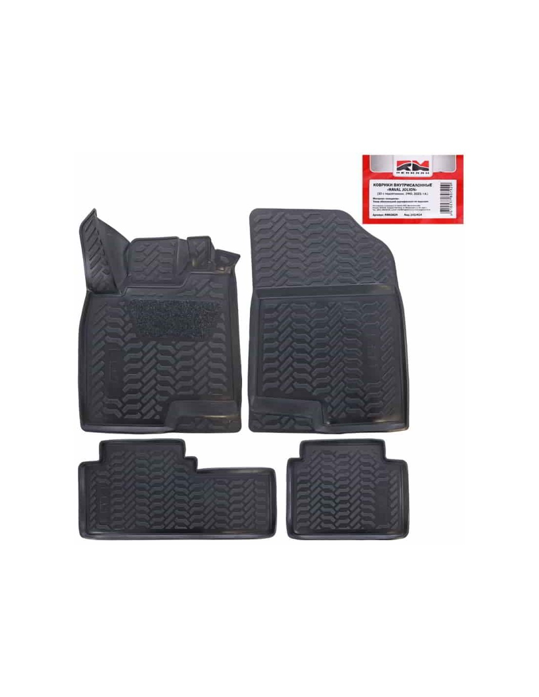 Коврики российского производителя "Элерон" изготовлены в салон Haval Jolion (21-) (2WD) (3D с подпятником) и не подходят на другой автомобиль.Коврики изготовлены в формате 3D(сплошная перемычка между площадкой отдыха левой ноги и педальным узлом) и имеют:уникальный подпятник из износоустойчивого материала в зоне интенсивного износа,который обеспечивает продолжительный срок службы изделия,а в зимний период предотвращает образования луж под ногами;перемычка на тоннель,совмещенная с одним из задних ковриков;места для штатных креплений,а так же для установки дополнительного крепежа водительского ковра (крепеж приобретается отдельно);высокий борт в 32мм.