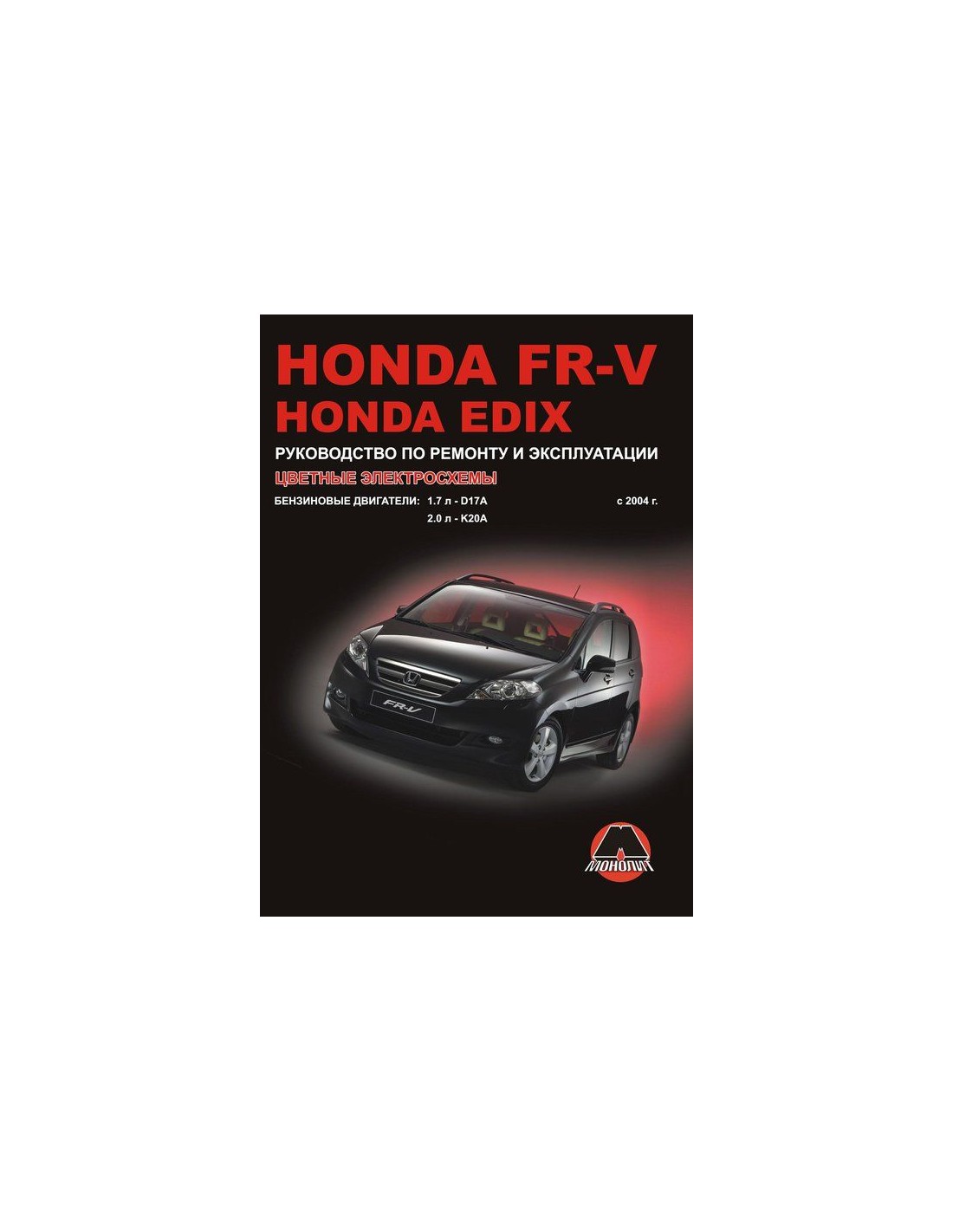 Книга по ремонту Honda FR-V/ EDIX c 2004г ,содержит руководство по эксплуатации,подробные сведения по техническому обслуживанию автомобиля,диагностике ремонту и регулировке элементов систем двигателя,в том числе электронного управления двигателем,систему смазки и охлаждения,запуска и зарядки,элементов механических и автоматических коробок передач,раздаточной коробки,тормозной системы,включая антиблокировочную систему тормозов,рулевого управления,подвески,кузовных элементов, систем кондиционирования и вентиляции.