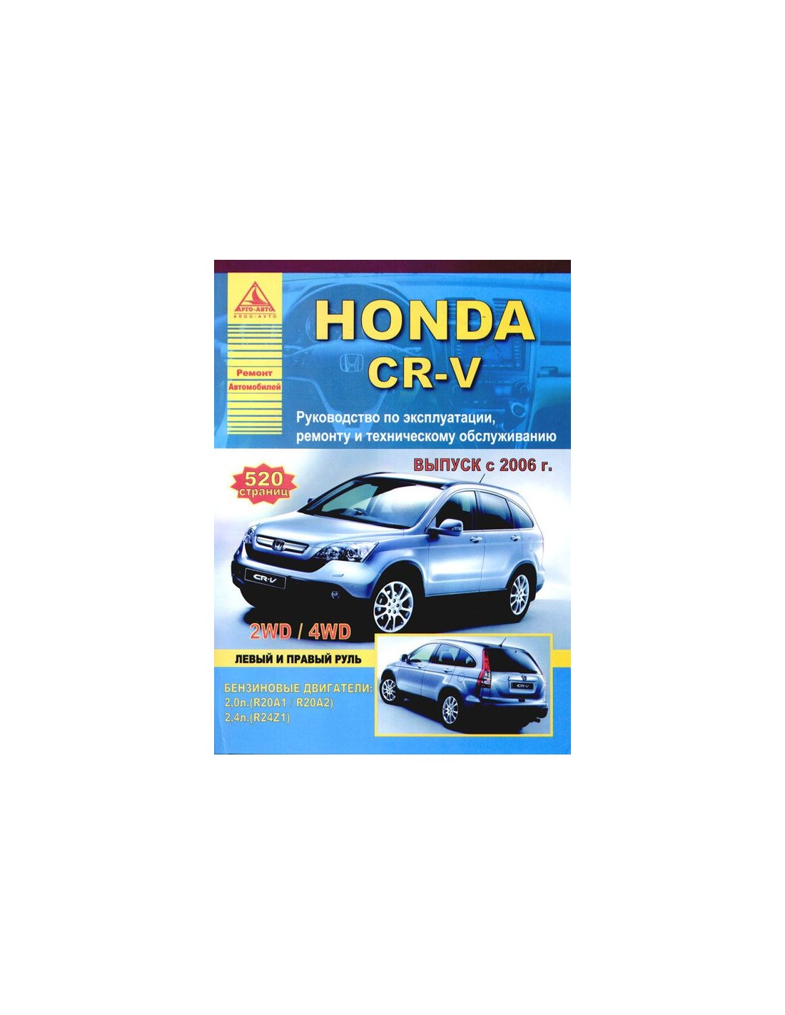 Книга по ремонту Honda CR-V 2006-12 г.,содержит руководство по эксплуатации,подробные сведения по техническому обслуживанию автомобиля,систему смазки и охлаждения,запуска и зарядки,элементов механических и автоматических коробок передач,тормозной системы,включая антиблокировочную систему тормозов,рулевого управления,подвески,кузовных элементов, систем кондиционирования и вентиляции.