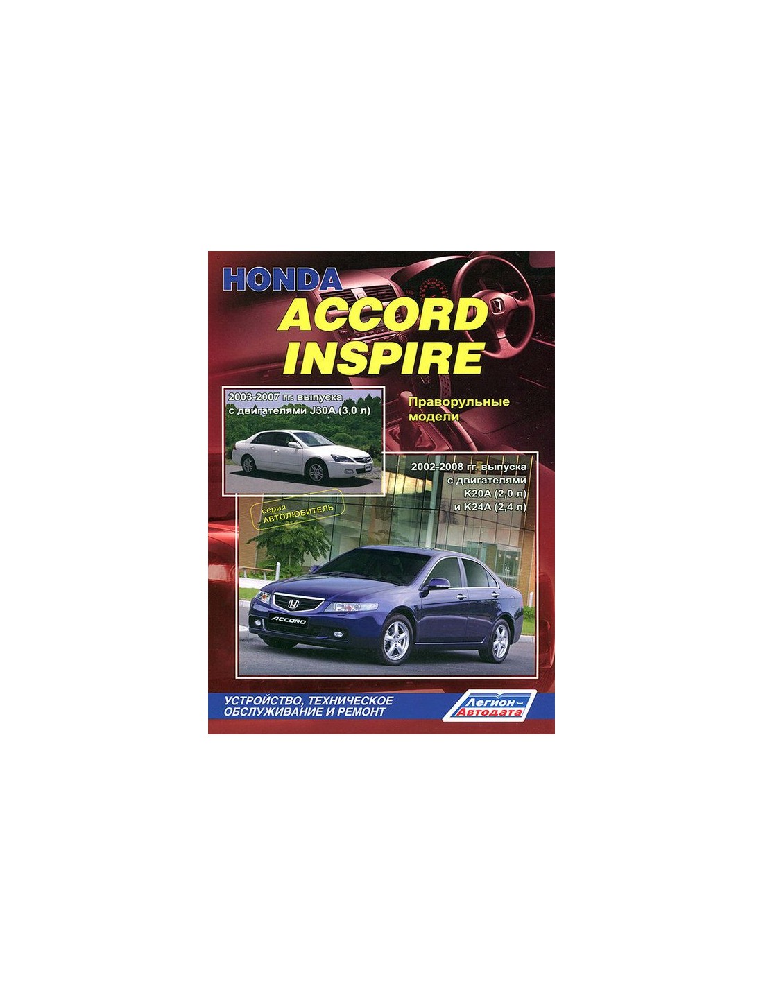 Книга по ремонту Honda Accord/Inspire (праворульн,содержит руководство по эксплуатации,подробные сведения по техническому обслуживанию автомобиля,диагностике ремонту и регулировке элементов систем двигателя,в том числе электронного управления двигателем,систему смазки и охлаждения,запуска и зарядки,элементов механических и автоматических коробок передач,раздаточной коробки,тормозной системы,включая антиблокировочную систему тормозов,рулевого управления,подвески,кузовных элементов, систем кондиционирования и вентиляции.