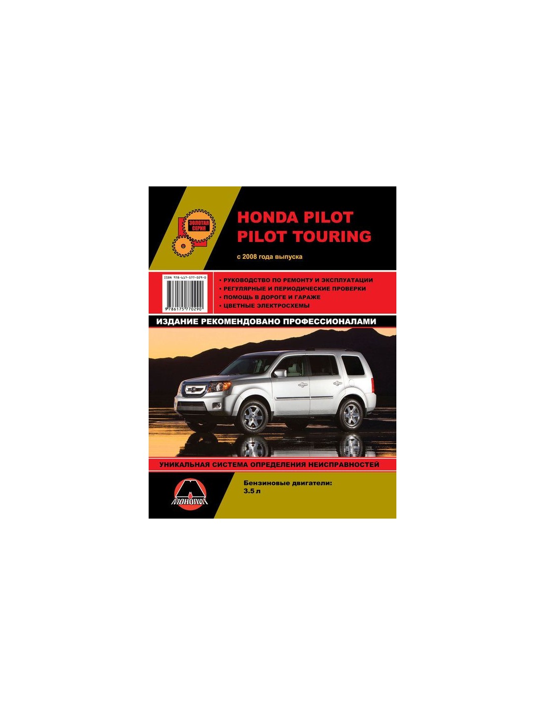 Устройство автомобиля,возможные неисправности и методы их устранения, сопрягаемые размеры основных деталей и пределы их допустимого износа,рекомендуемое смазочные материалы,рабочие жидкости и каталожные номера расходных запчастей,необходимых для технического обслуживания,размеры рекомендуемых и допускаемых шин и дисков-все это можно найти на страницах издания "Монолит" Книга автомобильная на Honda Pilot / Pilot Touring (с 2008)