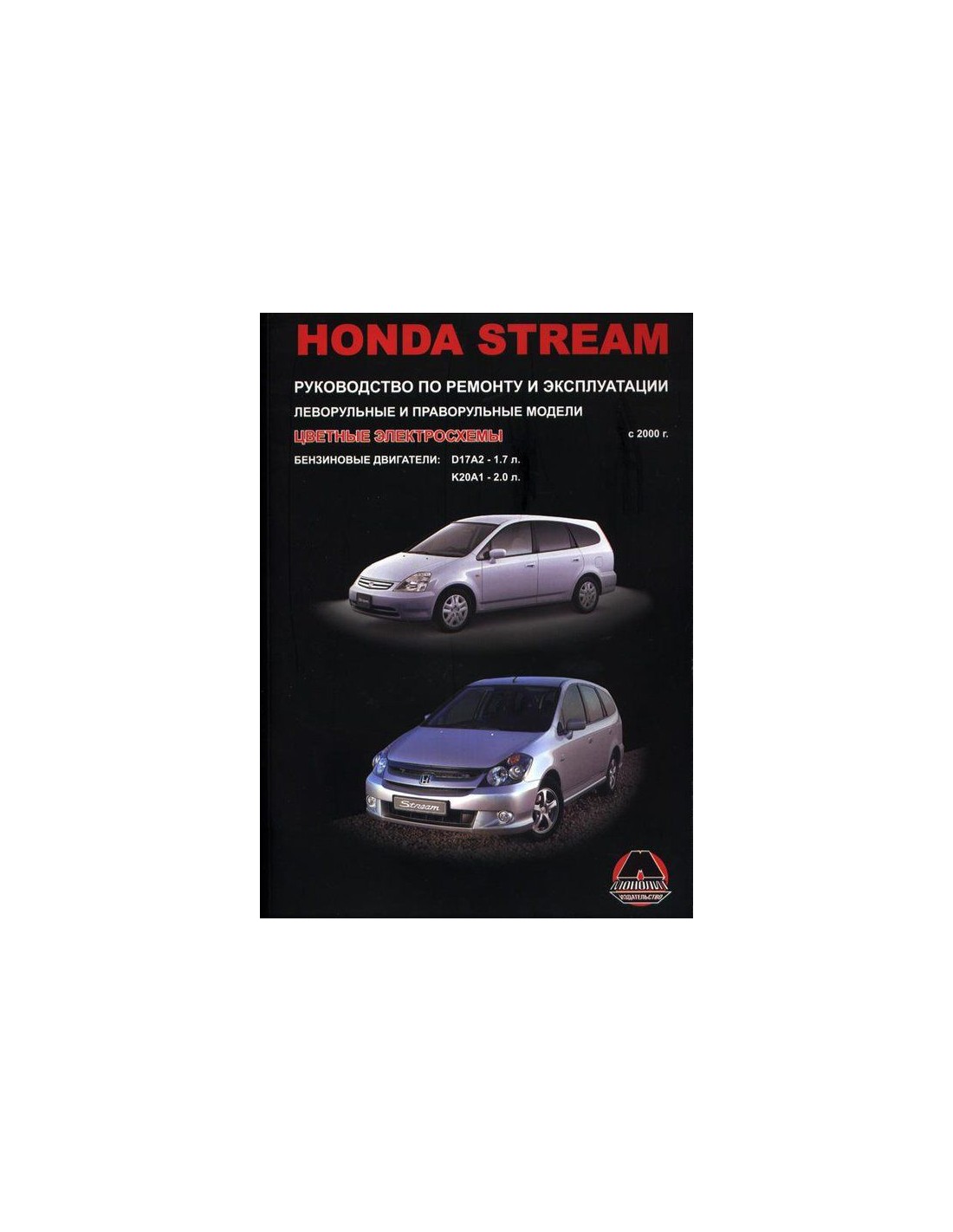Книга по ремонту Honda Stream c 2000 г ,содержит руководство по эксплуатации,подробные сведения по техническому обслуживанию автомобиля,диагностике ремонту и регулировке элементов систем двигателя,в том числе электронного управления двигателем,систему смазки и охлаждения,запуска и зарядки,элементов механических и автоматических коробок передач,раздаточной коробки,тормозной системы,включая антиблокировочную систему тормозов,рулевого управления,подвески,кузовных элементов, систем кондиционирования и вентиляции.