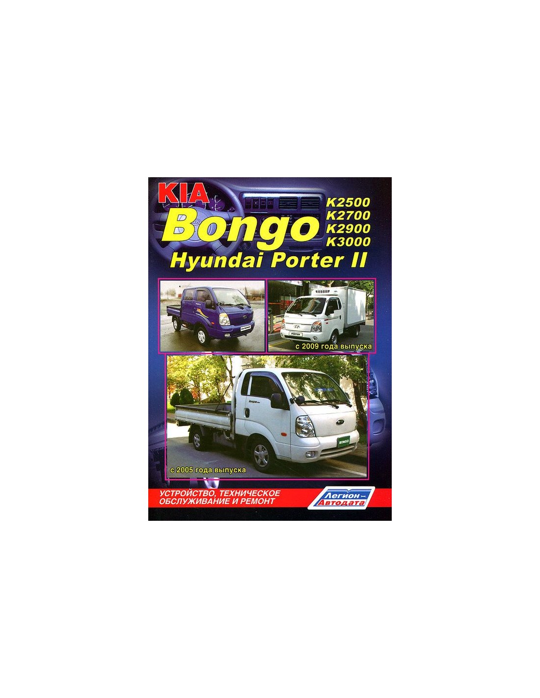 Книга по ремонту Hyundai Porter II & Kia Bongo III/K2500/K2700/K2900/K3000 c 2004 г.,содержит руководство по эксплуатации,подробные сведения по техническому обслуживанию автомобиля,диагностике ремонту и регулировке элементов систем двигателя,в том числе электронного управления двигателем,систему смазки и охлаждения,запуска и зарядки,элементов механических и автоматических коробок передач,раздаточной коробки,тормозной системы,включая антиблокировочную систему тормозов,рулевого управления,подвески,кузовных элементов, систем кондиционирования и вентиляции.