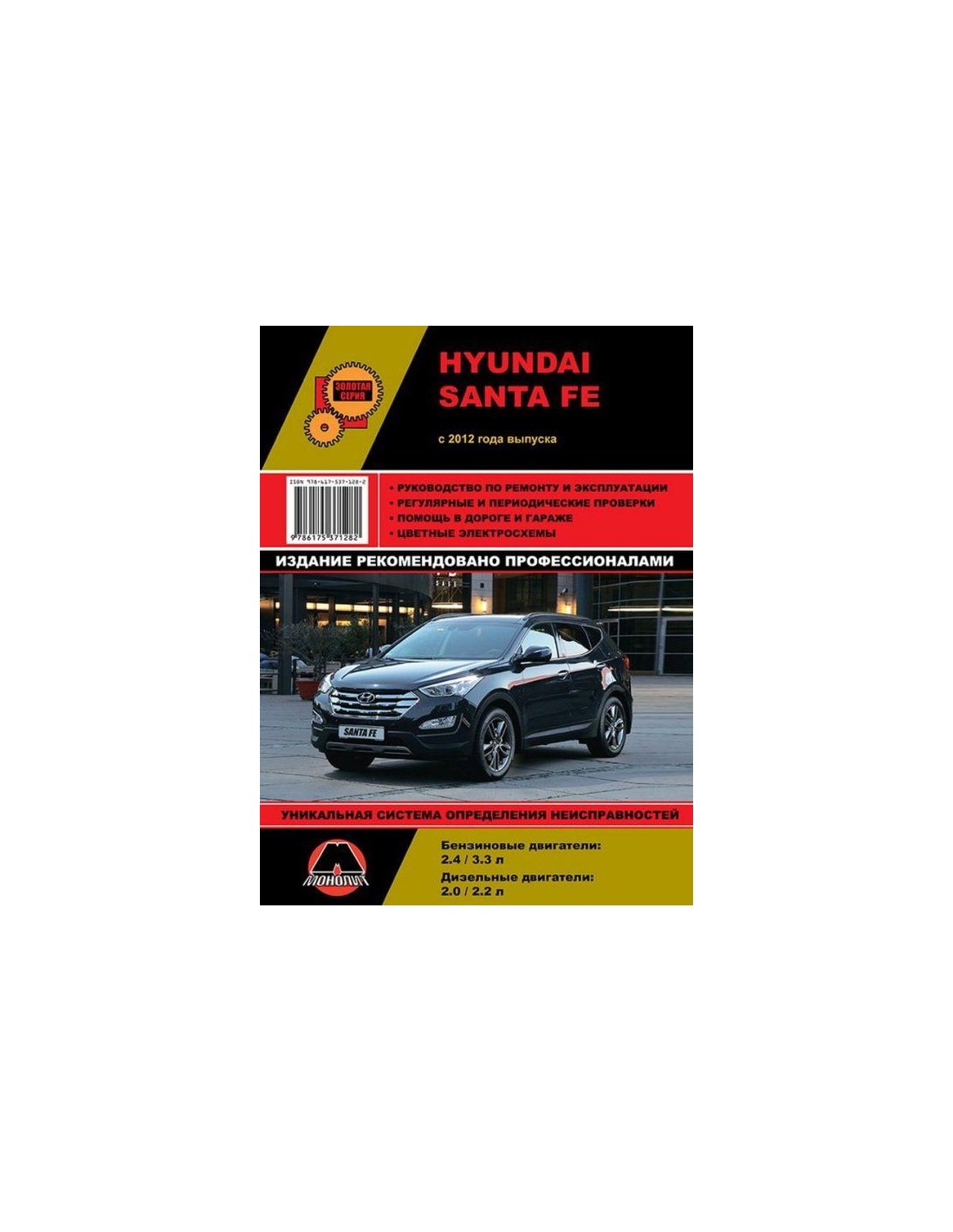 Устройство автомобиля,возможные неисправности и методы их устранения, сопрягаемые размеры основных деталей и пределы их допустимого износа,рекомендуемое смазочные материалы,рабочие жидкости и каталожные номера расходных запчастей,необходимых для технического обслуживания,размеры рекомендуемых и допускаемых шин и дисков-все это можно найти на страницах издания "Монолит" Книга автомобильная на Hyundai Santa Fe (с 2012)