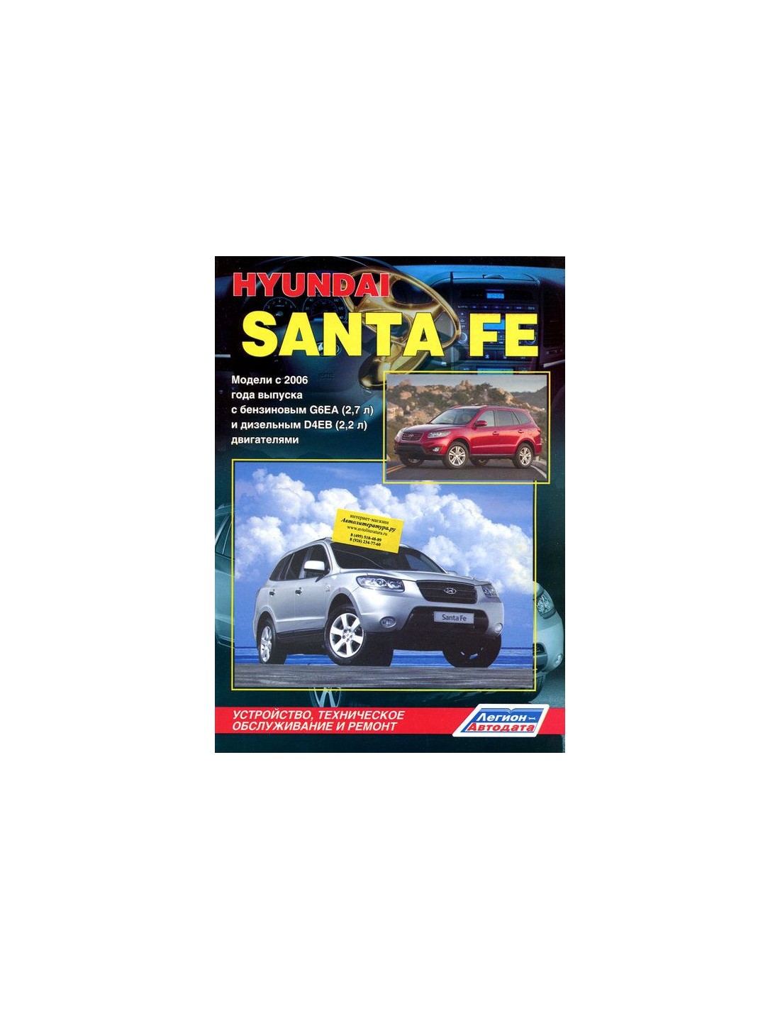 Книга по ремонту Hyundai Santa Fe 2006-09 г.,содержит руководство по эксплуатации,подробные сведения по техническому обслуживанию автомобиля,диагностике ремонту и регулировке элементов систем двигателя,в том числе электронного управления двигателем,систему смазки и охлаждения,запуска и зарядки,элементов механических и автоматических коробок передач,раздаточной коробки,тормозной системы,включая антиблокировочную систему тормозов,рулевого управления,подвески,кузовных элементов, систем кондиционирования и вентиляции.
