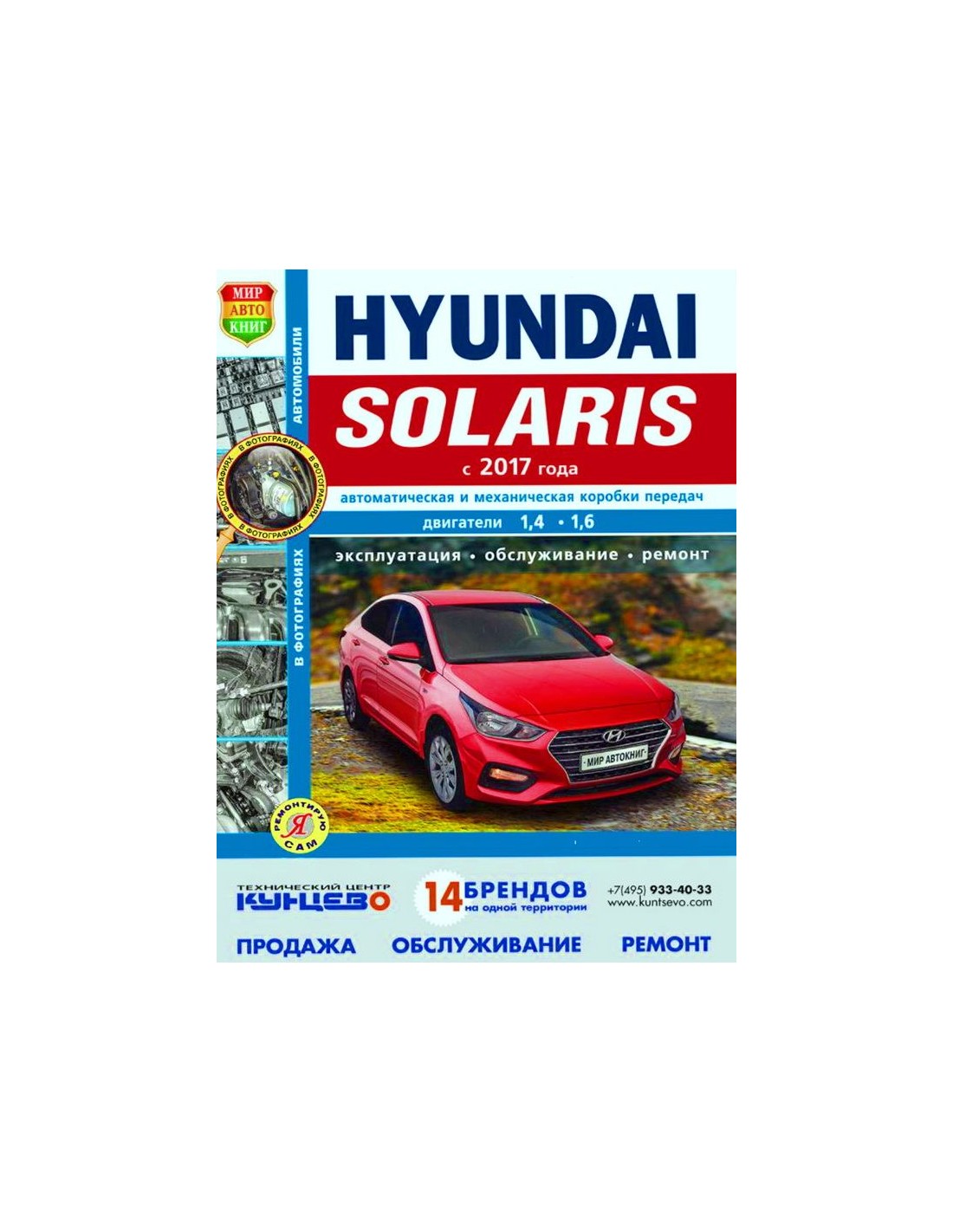 Книга по ремонту Hyundai Solaris 2 c 2017 г. ,содержит руководство по эксплуатации,общие сведения об устройстве автомобиля,рекомендации по техническому обслуживанию автомобиля,диагностике ремонту и регулировке элементов систем двигателя,систему смазки и охлаждения,запуска и зарядки,элементов механических и автоматических коробок передач,тормозной системы,включая антиблокировочную систему тормозов,рулевого управления,подвески,кузовных элементов, систем кондиционирования и вентиляции.