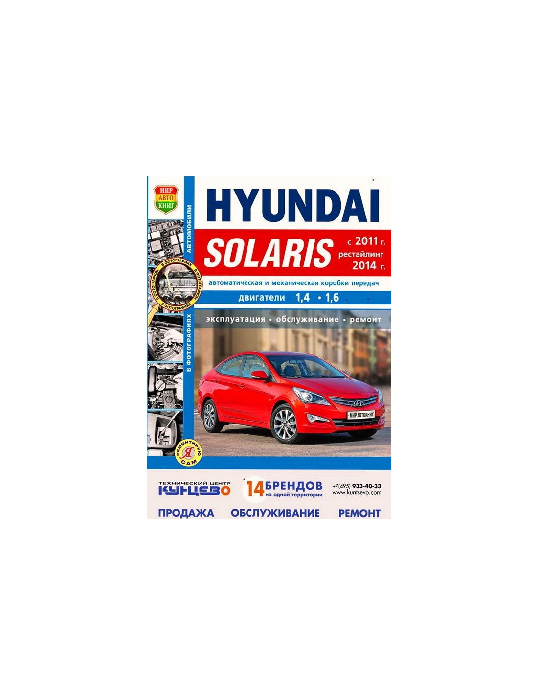 Книга по ремонту Hyundai Solaris (c 2011 г.). ,содержит руководство по эксплуатации,общие сведения об устройстве автомобиля,рекомендации по техническому обслуживанию автомобиля,диагностике ремонту и регулировке элементов систем двигателя,систему смазки и охлаждения,запуска и зарядки,элементов механических и автоматических коробок передач,тормозной системы,включая антиблокировочную систему тормозов,рулевого управления,подвески,кузовных элементов, систем кондиционирования и вентиляции.