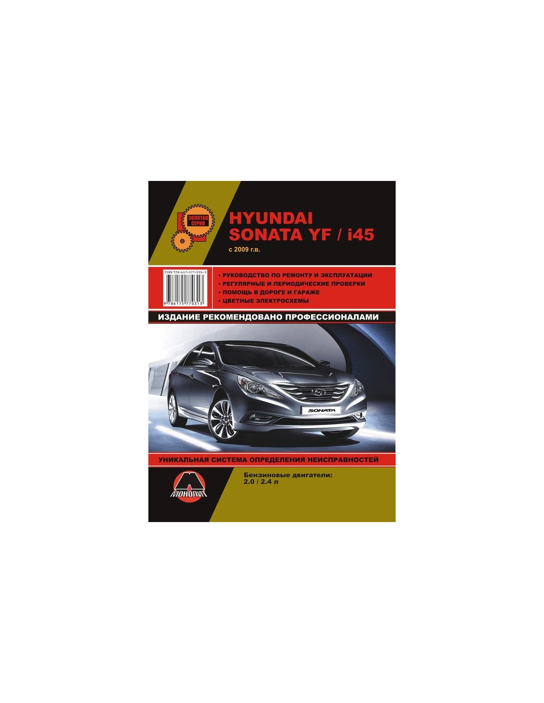 Устройство автомобиля,возможные неисправности и методы их устранения, сопрягаемые размеры основных деталей и пределы их допустимого износа,рекомендуемое смазочные материалы,рабочие жидкости и каталожные номера расходных запчастей,необходимых для технического обслуживания,размеры рекомендуемых и допускаемых шин и дисков-все это можно найти на страницах издания "Монолит" Книга автомобильная на Hyundai Sonata YF/ i45 (c 2009)
