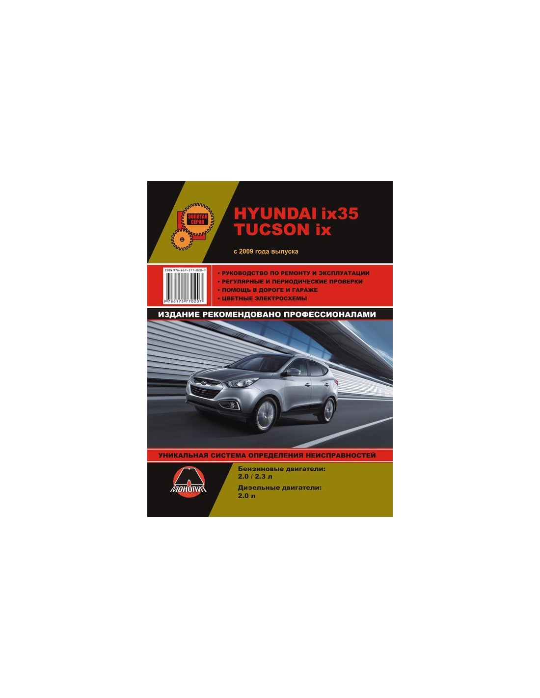 Книга по ремонту Hyundai ix 35/Tucson ix с 2009г ,содержит руководство по эксплуатации,подробные сведения по техническому обслуживанию автомобиля,диагностике ремонту и регулировке элементов систем двигателя,в том числе электронного управления двигателем,систему смазки и охлаждения,запуска и зарядки,элементов механических и автоматических коробок передач,раздаточной коробки,тормозной системы,включая антиблокировочную систему тормозов,рулевого управления,подвески,кузовных элементов, систем кондиционирования и вентиляции.