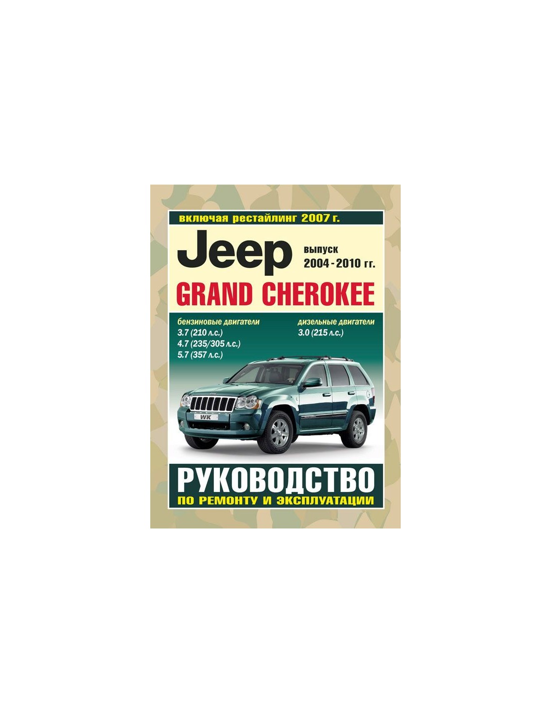 Устройство автомобиля,возможные неисправности и методы их устранения, сопрягаемые размеры основных деталей и пределы их допустимого износа,рекомендуемое смазочные материалы,рабочие жидкости и т.п-все это можно найти на страницах издания "Гуси-лебеди" Книга автомобильная на Jeep Grand Cherokee с 2004 по 2010 г.
