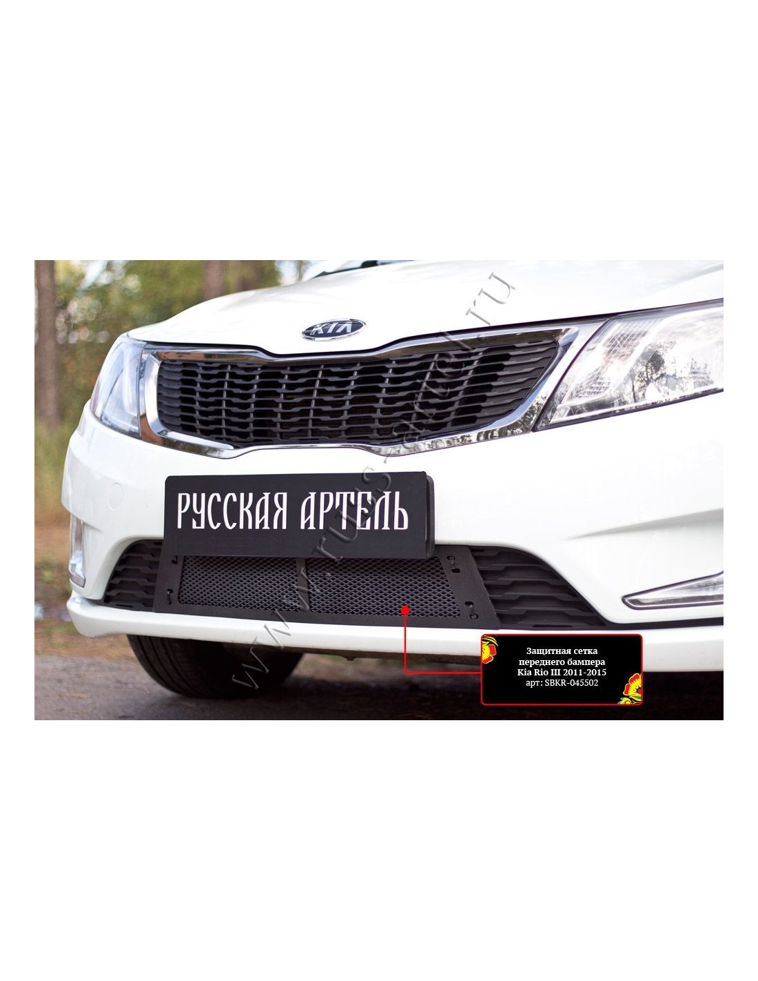 Защитная сетка решетки переднего бампера Rio III 2011-2015 (седан) .Русская Артель