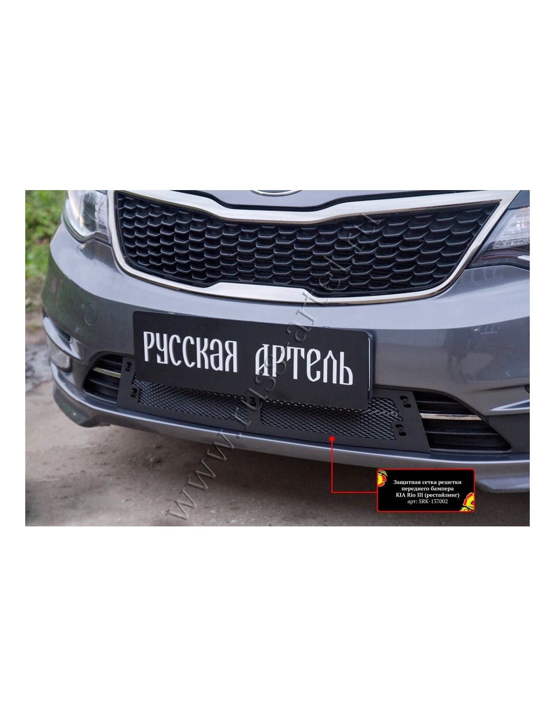 Защитная сетка решетки переднего бампера Rio III рестайлинг 2015-2016 (седан) .Русская Артель