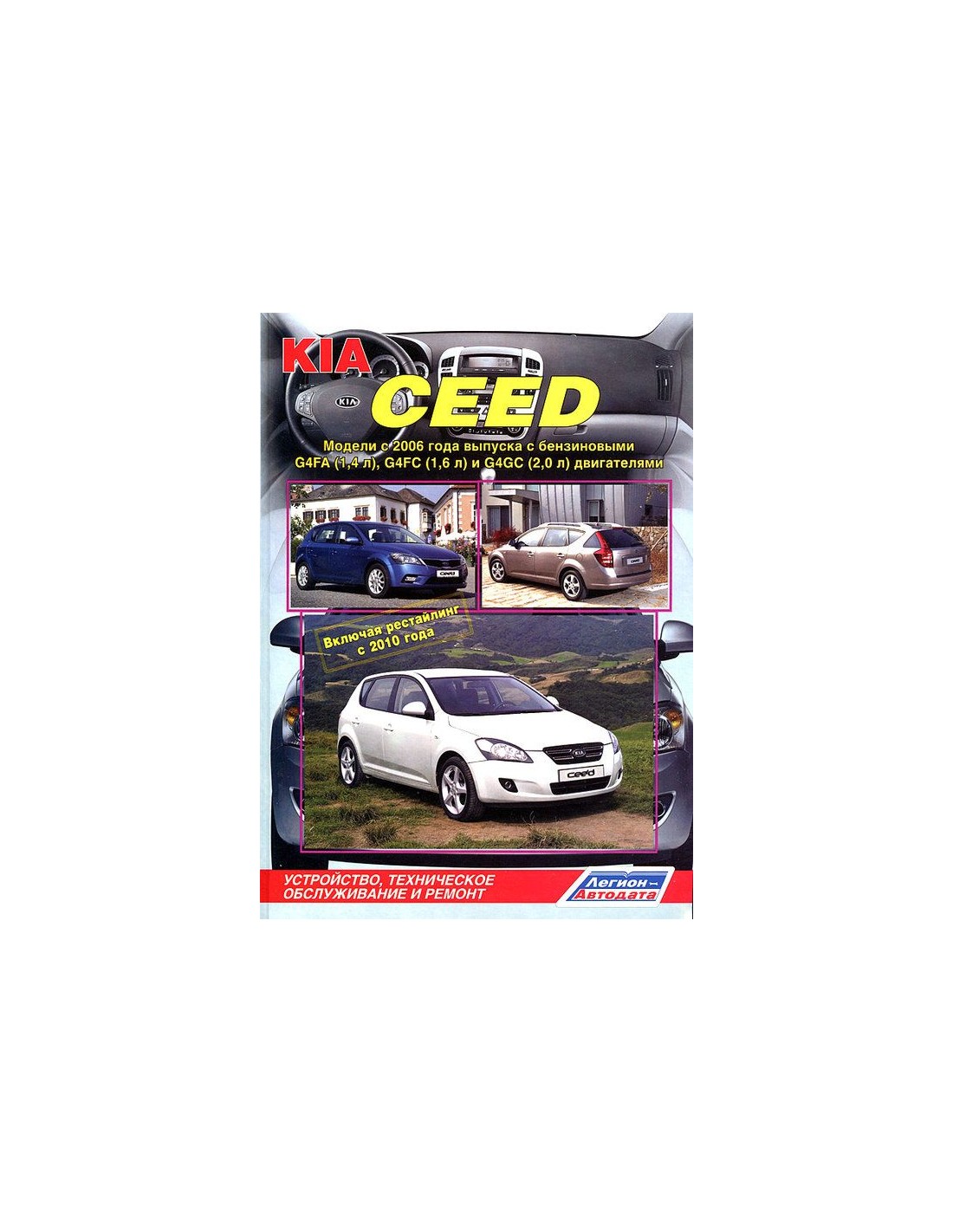 Устройство автомобиля,возможные неисправности и методы их устранения, сопрягаемые размеры основных деталей и пределы их допустимого износа,рекомендуемое смазочные материалы,рабочие жидкости и каталожные номера расходных запчастей,необходимых для технического обслуживания,размеры рекомендуемых и допускаемых шин и дисков-все это можно найти на страницах издания "Легион-Автодата" Книга автомобильная на KIA Ceed с 2006 г.