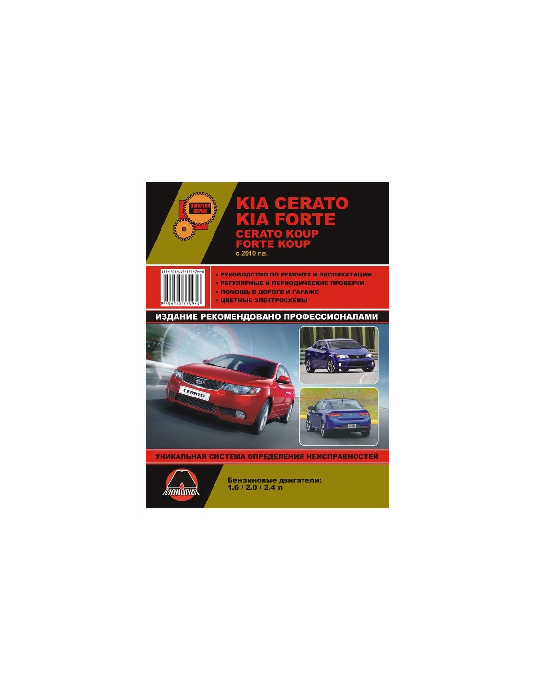 Устройство автомобиля,возможные неисправности и методы их устранения, сопрягаемые размеры основных деталей и пределы их допустимого износа,рекомендуемое смазочные материалы,рабочие жидкости и каталожные номера расходных запчастей,необходимых для технического обслуживания,размеры рекомендуемых и допускаемых шин и дисков-все это можно найти на страницах издания "Монолит" Книга автомобильная на KIA Cerato / KIA Forte / Cerato Koup / Forte Koup (с 2010)