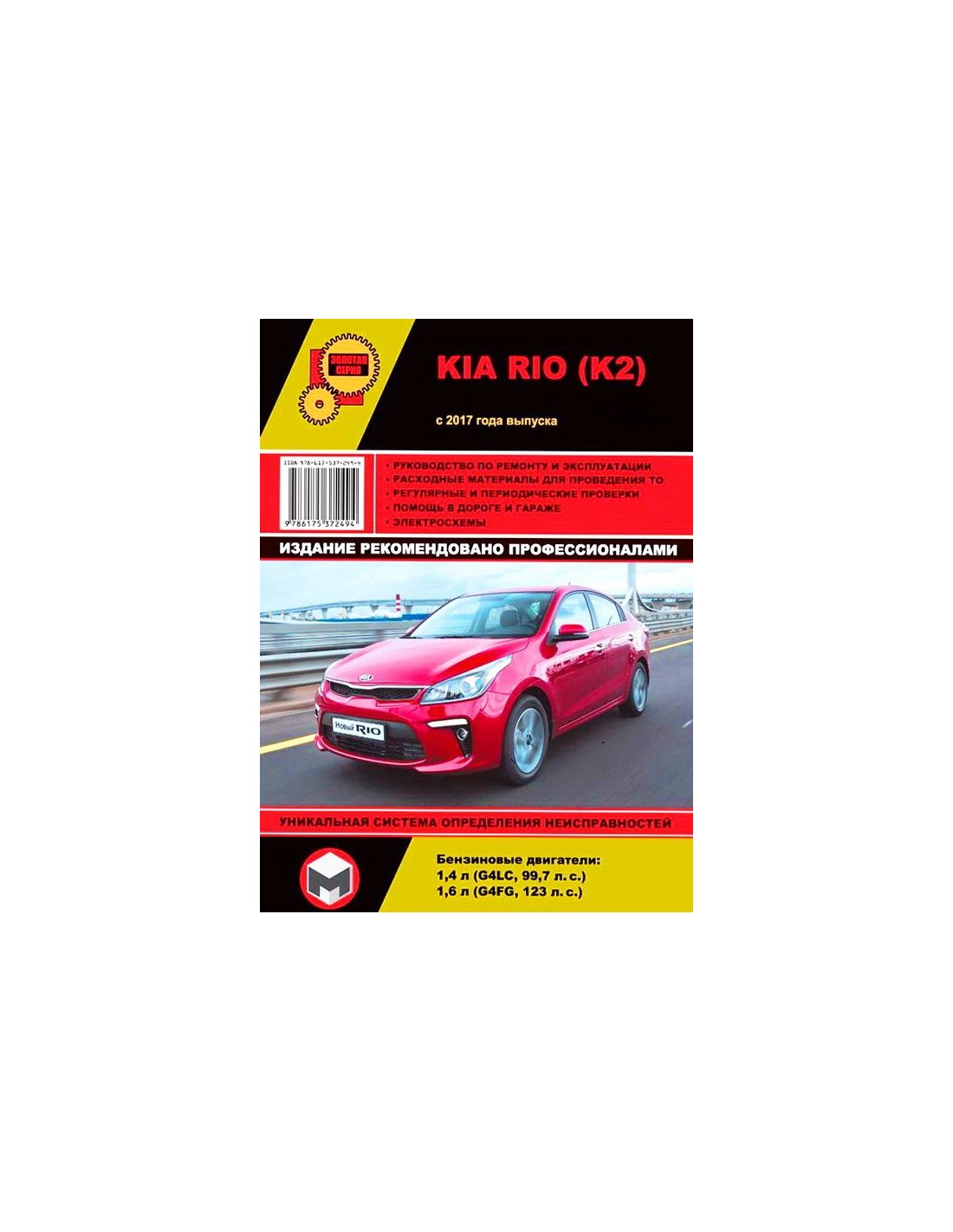 Книга по ремонту Kia Rio с 2017 ,содержит руководство по эксплуатации,подробные сведения по техническому обслуживанию автомобиля,диагностике ремонту и регулировке элементов систем двигателя,в том числе электронного управления двигателем,систему смазки и охлаждения,запуска и зарядки,элементов механических и автоматических коробок передач,раздаточной коробки,тормозной системы,включая антиблокировочную систему тормозов,рулевого управления,подвески,кузовных элементов, систем кондиционирования и вентиляции.