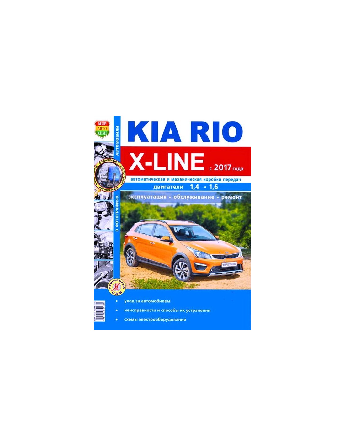 Книга по ремонту Kia Rio X-Line с 2017 г. ,содержит руководство по эксплуатации,общие сведения об устройстве автомобиля,рекомендации по техническому обслуживанию автомобиля,диагностике ремонту и регулировке элементов систем двигателя,систему смазки и охлаждения,запуска и зарядки,элементов механических и автоматических коробок передач,тормозной системы,включая антиблокировочную систему тормозов,рулевого управления,подвески,кузовных элементов, систем кондиционирования и вентиляции.