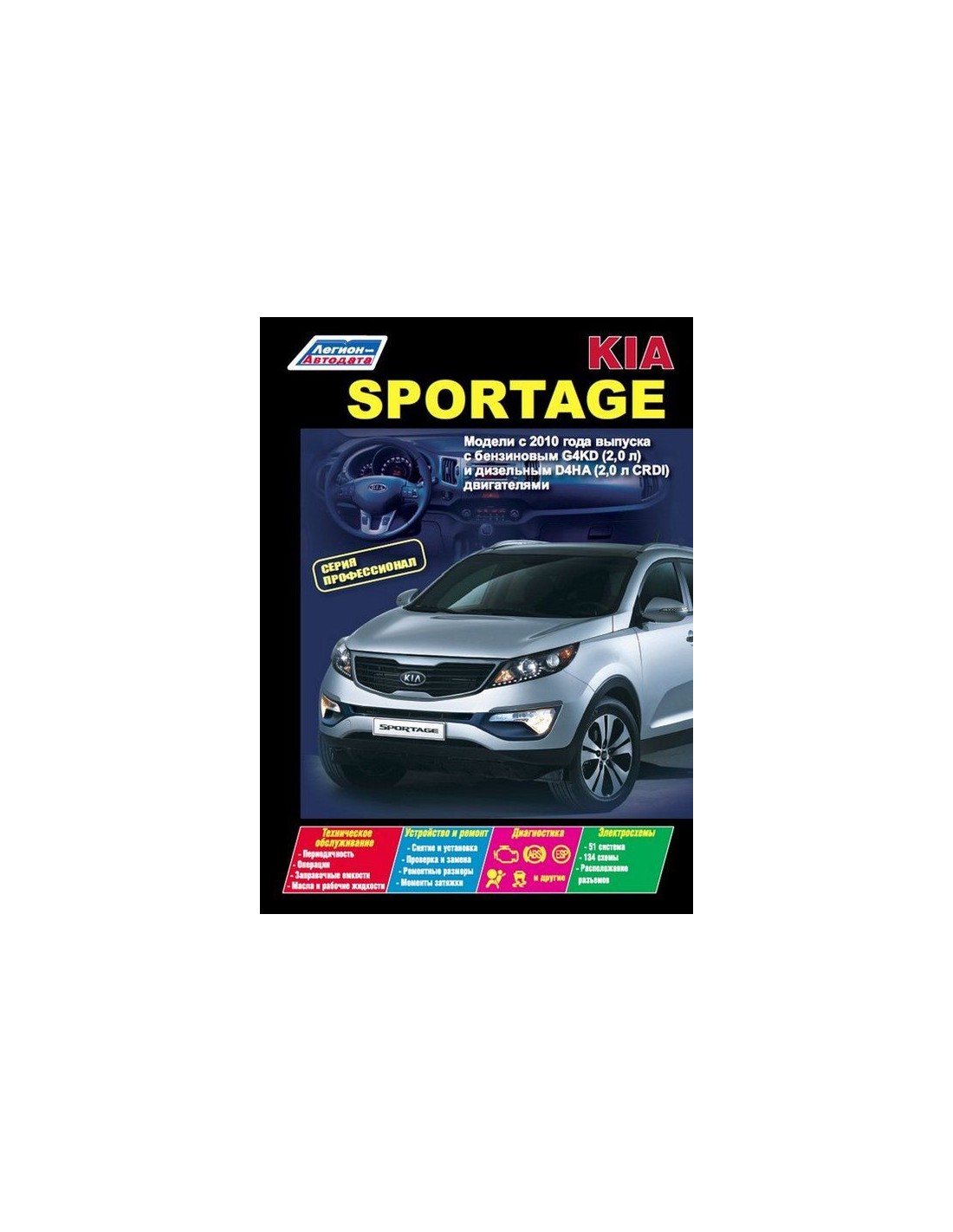 Книга по ремонту Kia Sportage 3 2010-16 г.,содержит руководство по эксплуатации,подробные сведения по техническому обслуживанию автомобиля,диагностике ремонту и регулировке элементов систем двигателя,в том числе электронного управления двигателем,систему смазки и охлаждения,запуска и зарядки,элементов механических и автоматических коробок передач,раздаточной коробки,тормозной системы,включая антиблокировочную систему тормозов,рулевого управления,подвески,кузовных элементов, систем кондиционирования и вентиляции.