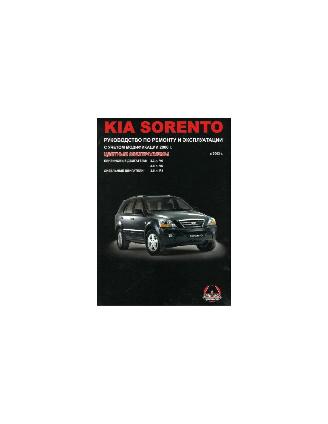 Книга по ремонту Kia Sorento c 2003 г ,содержит руководство по эксплуатации,подробные сведения по техническому обслуживанию автомобиля,диагностике ремонту и регулировке элементов систем двигателя,в том числе электронного управления двигателем,систему смазки и охлаждения,запуска и зарядки,элементов механических и автоматических коробок передач,раздаточной коробки,тормозной системы,включая антиблокировочную систему тормозов,рулевого управления,подвески,кузовных элементов, систем кондиционирования и вентиляции.