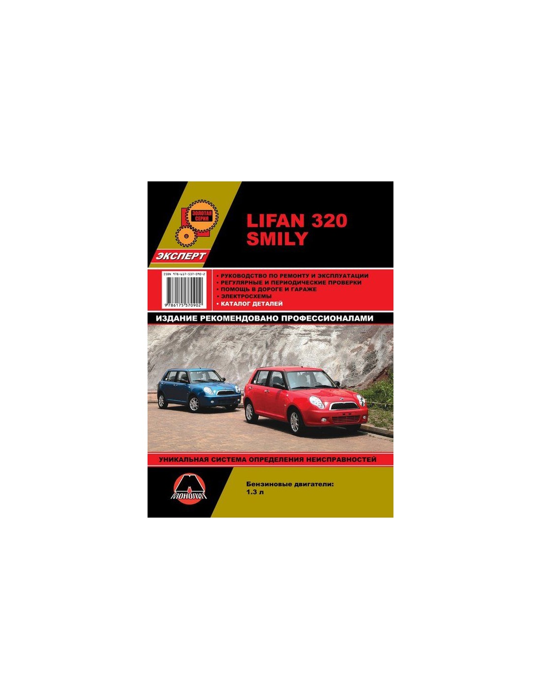 Книга по ремонту Lifan 320 Smily ,содержит руководство по эксплуатации,подробные сведения по техническому обслуживанию автомобиля,диагностике ремонту и регулировке элементов систем двигателя,в том числе электронного управления двигателем,систему смазки и охлаждения,запуска и зарядки,элементов механических и автоматических коробок передач,раздаточной коробки,тормозной системы,включая антиблокировочную систему тормозов,рулевого управления,подвески,кузовных элементов, систем кондиционирования и вентиляции.