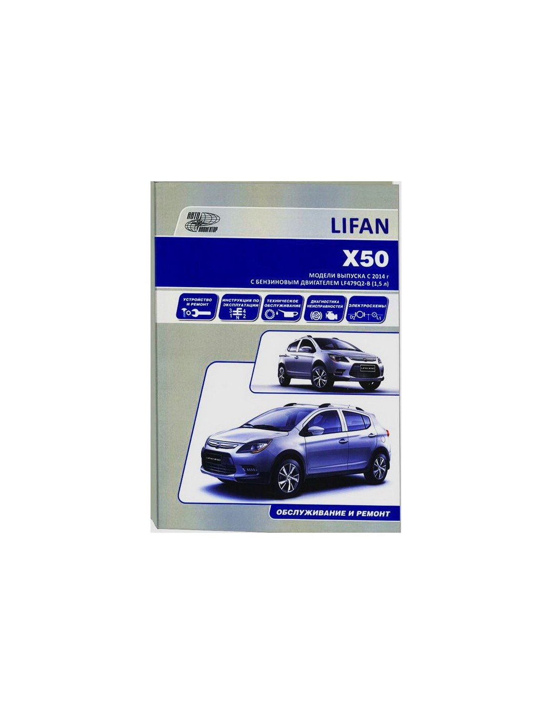 Книга по ремонту Lifan X50 c 2014 г ,содержит руководство по эксплуатации,подробные сведения по техническому обслуживанию автомобиля,диагностике ремонту и регулировке элементов систем двигателя,в том числе электронного управления двигателем,систему смазки и охлаждения,запуска и зарядки,элементов механических и автоматических коробок передач,раздаточной коробки,тормозной системы,включая антиблокировочную систему тормозов,рулевого управления,подвески,кузовных элементов, систем кондиционирования и вентиляции.