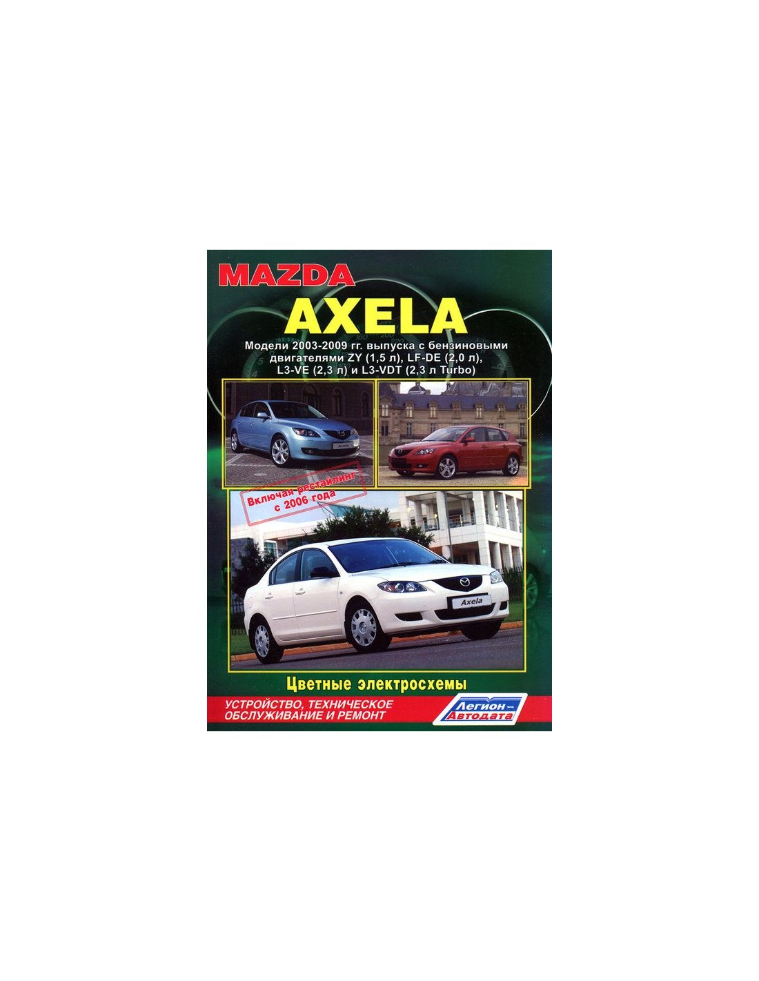 Книга по ремонту Mazda Axela 2003-09 г.,содержит руководство по эксплуатации,подробные сведения по техническому обслуживанию автомобиля,диагностике ремонту и регулировке элементов систем двигателя,в том числе электронного управления двигателем,систему смазки и охлаждения,запуска и зарядки,элементов механических и автоматических коробок передач,раздаточной коробки,тормозной системы,включая антиблокировочную систему тормозов,рулевого управления,подвески,кузовных элементов, систем кондиционирования и вентиляции.